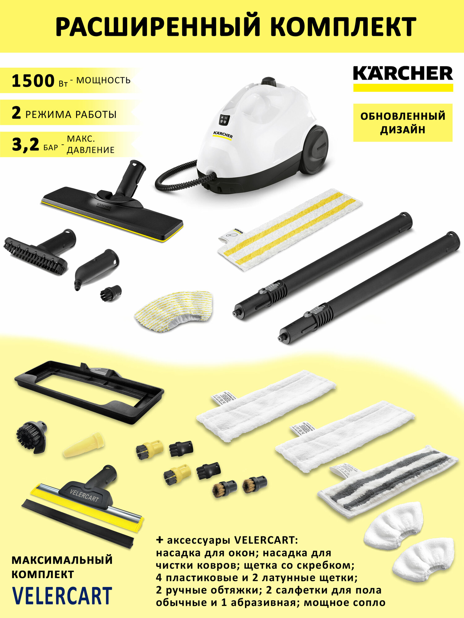 Купить Пароочиститель для дома Karcher SC 2 EasyFix, белый + аксессуары VELERCART в комплектации MAX
