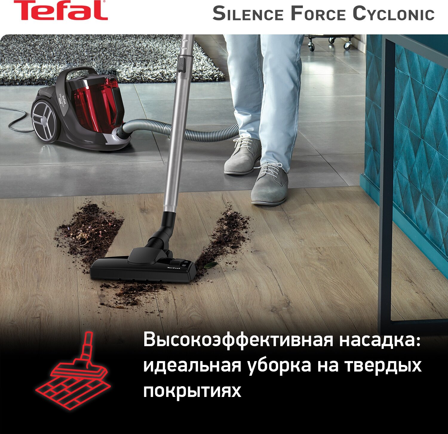 Пылесос Tefal Silence Force Cyclonic TW7233EA, 550Вт, красный/серый [2211401014]