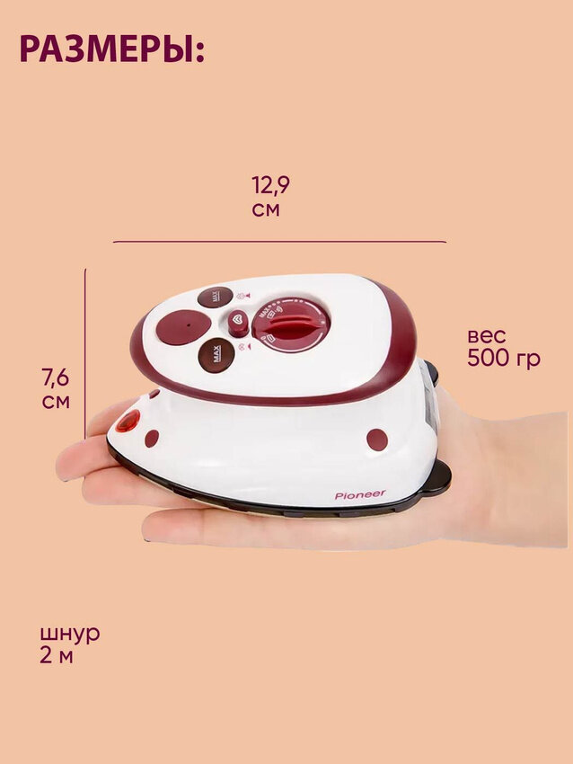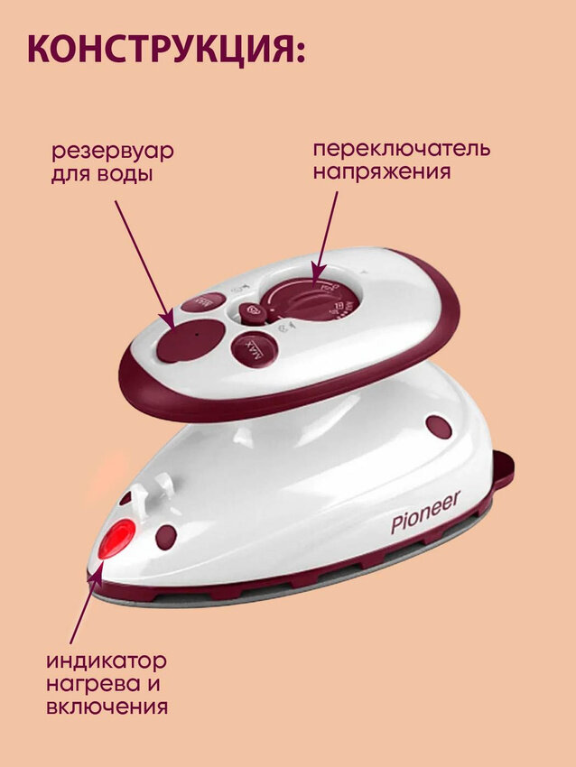 Дорожный утюг Pioneer SI1001, белый/брусничный