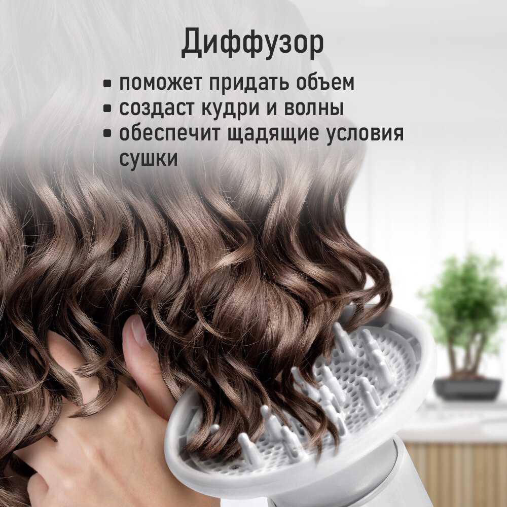 Фен для волос ионный с диффузором, 1800 Вт