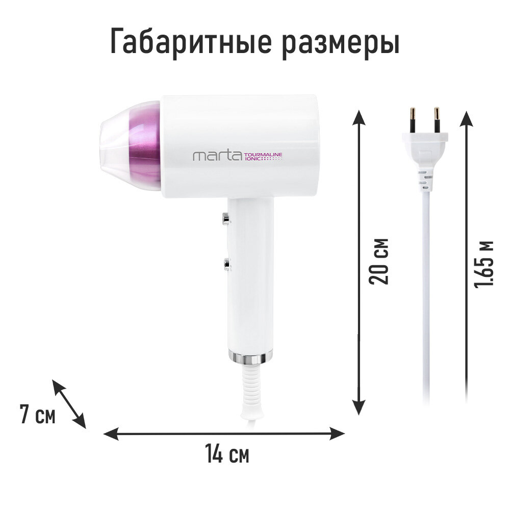 СохранитьФен MARTA MT-HD1403A Технология tourmaline ionic белая фуксия интересное: