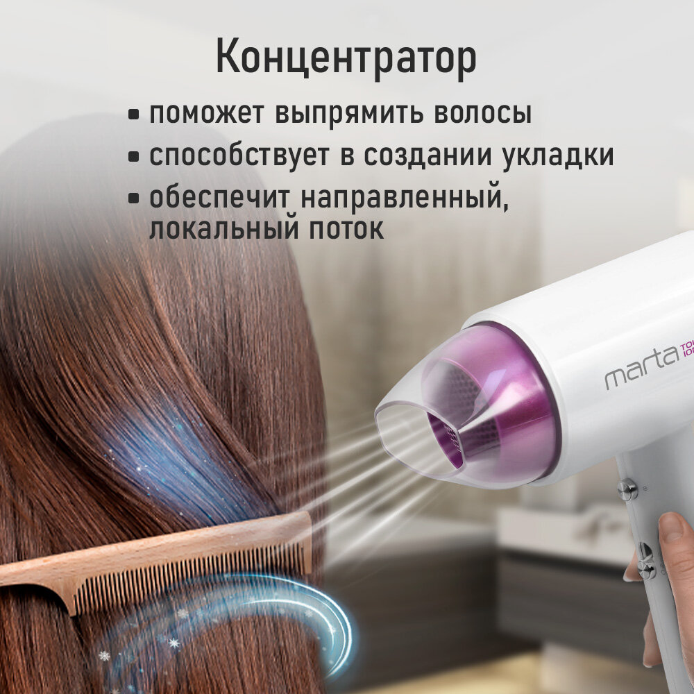 Купить Фен MARTA MT-HD1403A Технология tourmaline ionic белая фуксия