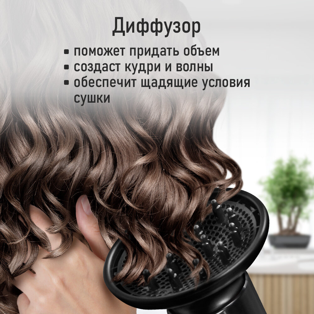 Фен для волос ионный с диффузором, 1800 Вт