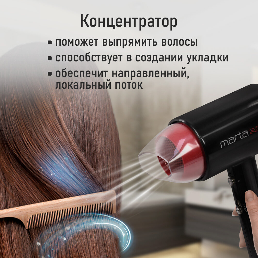СохранитьФен MARTA MT-HD1403A Технология tourmaline ionic черный коралл интересное: