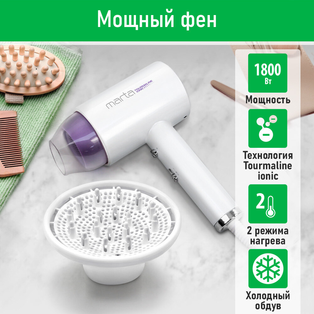 Купить Фен MARTA MT-HD1403A Технология tourmaline ionic светлый чароит