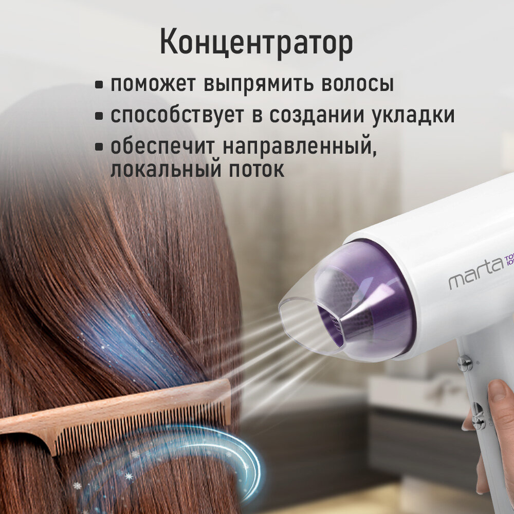 СохранитьФен MARTA MT-HD1403A Технология tourmaline ionic светлый чароит интересное: