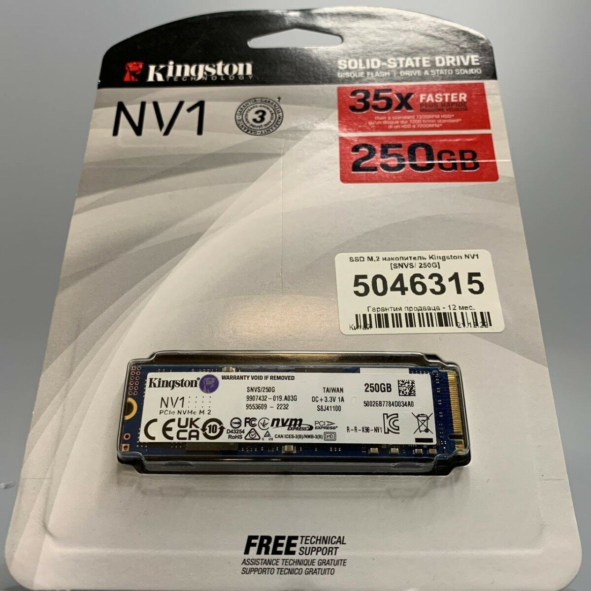 Купить Оригинал! Твердотельный накопитель Kingston NV1 250 ГБ M.2 SNVS/250G Global