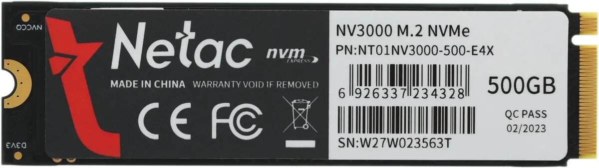 SSD накопитель NETAC NV3000 NT01NV3000-500-E4X 500ГБ