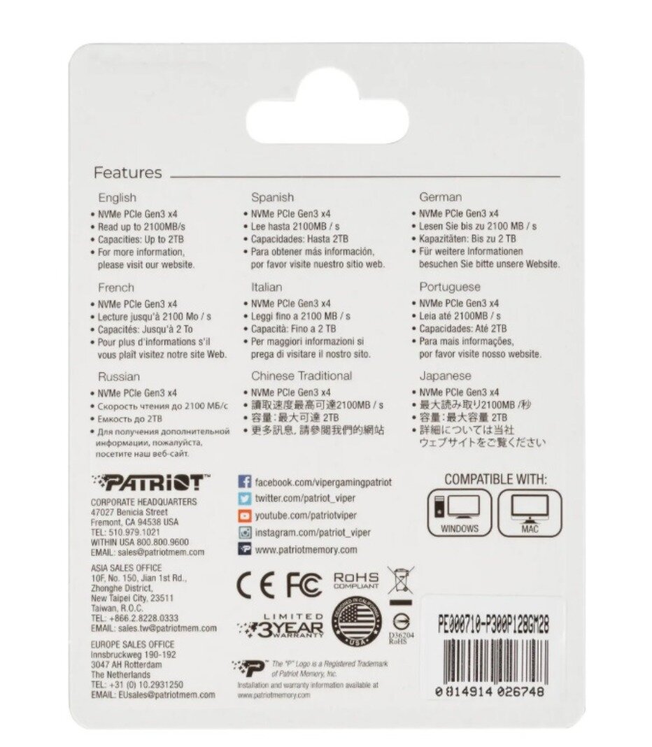 Ниже Вы можете прочитать отзывы на SSD накопитель Patriot P300 P300P128GM28 128ГБ, M.2 2280, PCIe 3.0 x4, ознакомится с подробными характеристиками, посмотреть интересные обзоры и фотографии на SSD накопитель Patriot P300 P300P128GM28 128ГБ, M.2 2280, PCIe 3.0 x4.