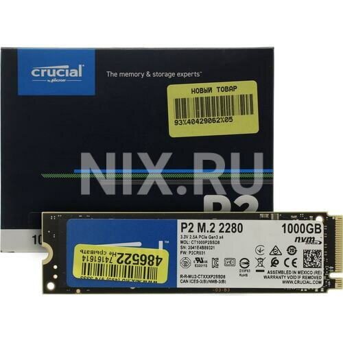 Твердотельный накопитель CT1000P2SSD8 Crucial P2 SSD 1000GB, M.2 (2280), PCIe Gen 3.0, NVMe, R2400/w
