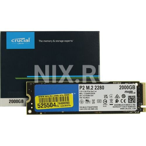 SSD диск Crucial M.2 2280 P2 series 2.0 Тб Pci-e 3.0 x4 QLC CT2000P2SSD8 CT2000P2SSD8