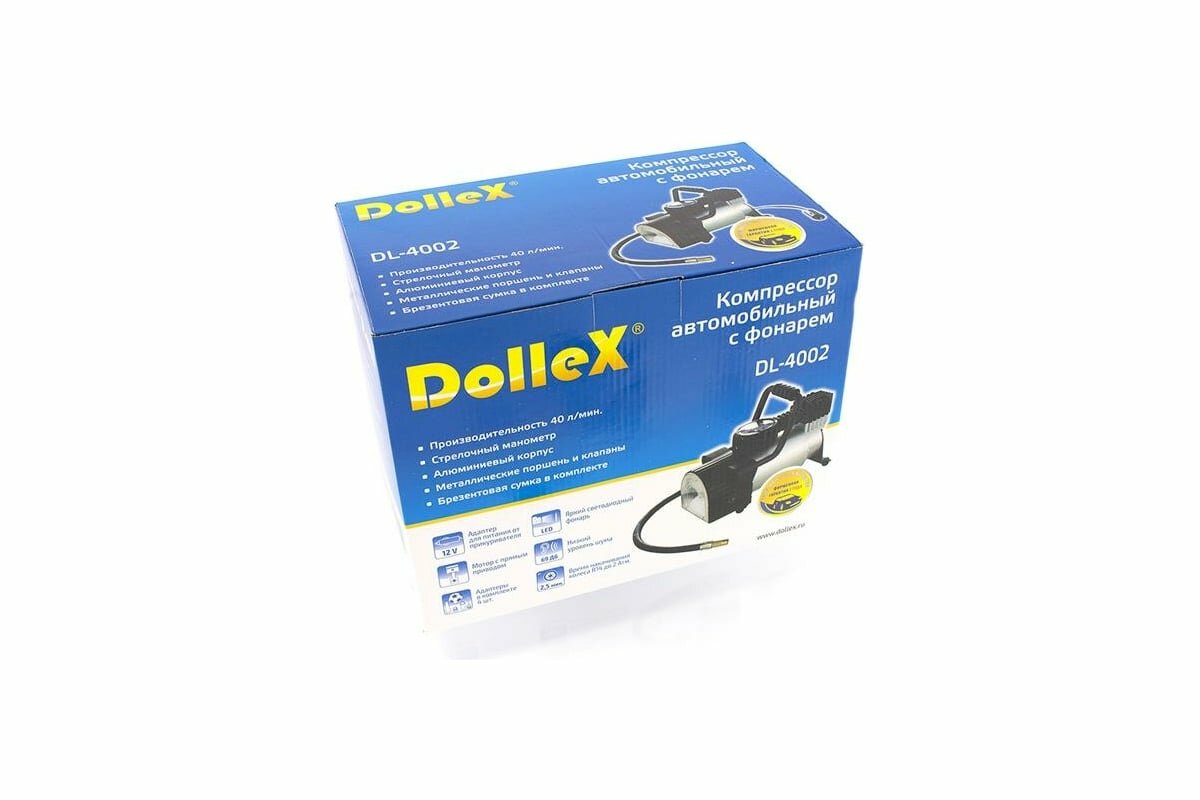 Ниже Вы можете прочитать отзывы на Компрессор DOLLEX 12V, 14 A, 10 Атм, 40 л / мин, предохр-ль, фонарь, сумка, DL4002 DOLLEX DL-4002, ознакомится с подробными характеристиками, посмотреть интересные обзоры и фотографии на Компрессор DOLLEX 12V, 14 A, 10 Атм, 40 л / мин, предохр-ль, фонарь, сумка, DL4002 DOLLEX DL-4002.
