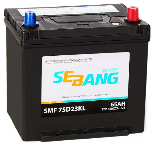 Автомобильный аккумулятор SEBANG SMF 65 Ач обр. пол. 75D23KL 580A D23 (232x175x225)