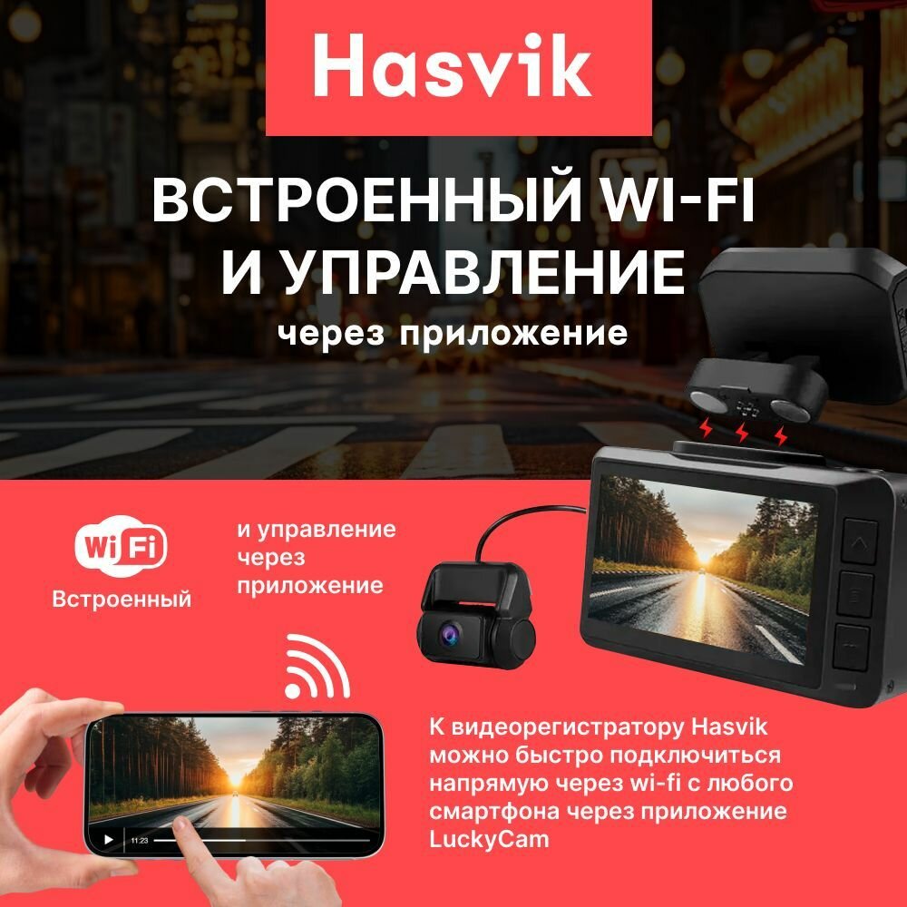 Видеорегистратор автомобильный Hasvik DVR-S16, IPS-экран, GPS, Wi-Fi, черный