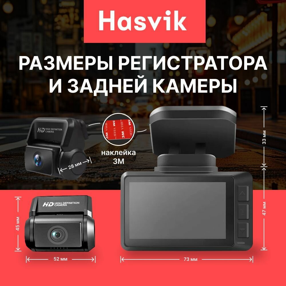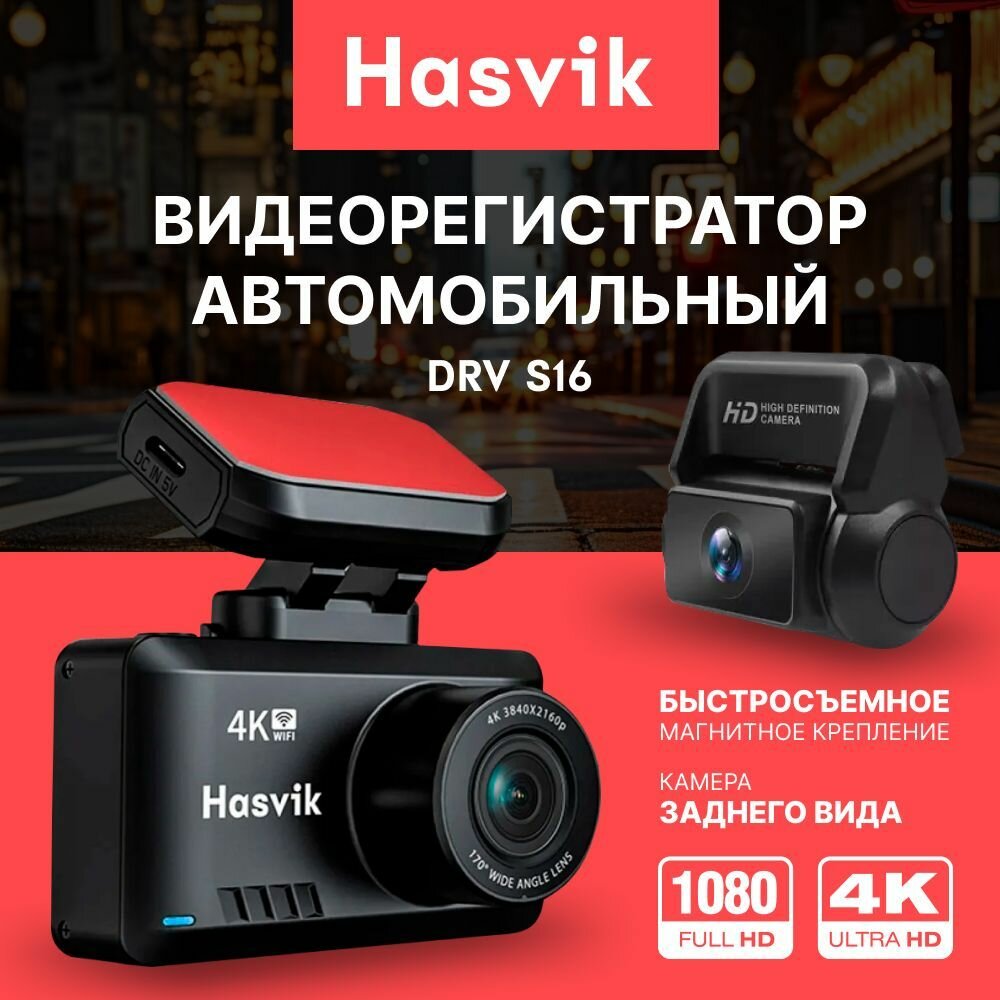 Видеорегистратор автомобильный Hasvik DVR S16 с камерой заднего вида и датчиком удара 4К
