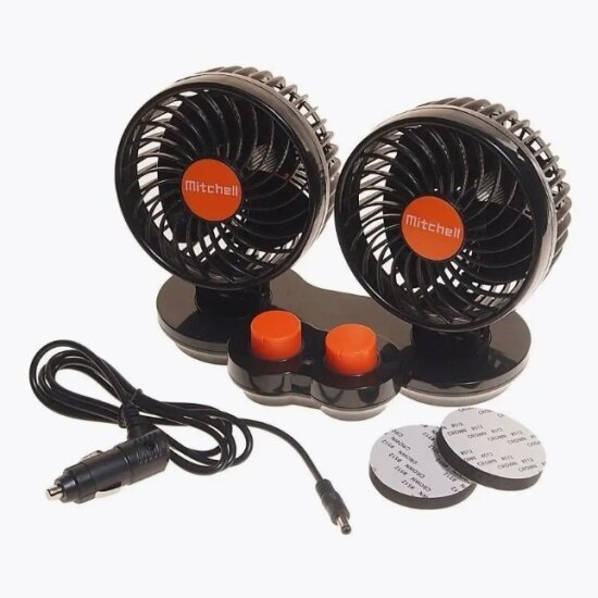 Купить Вентилятор Mitchell 12 см, 24V, 13W, диммер, двойной, с регулируемыми углами обдува, black/orange
