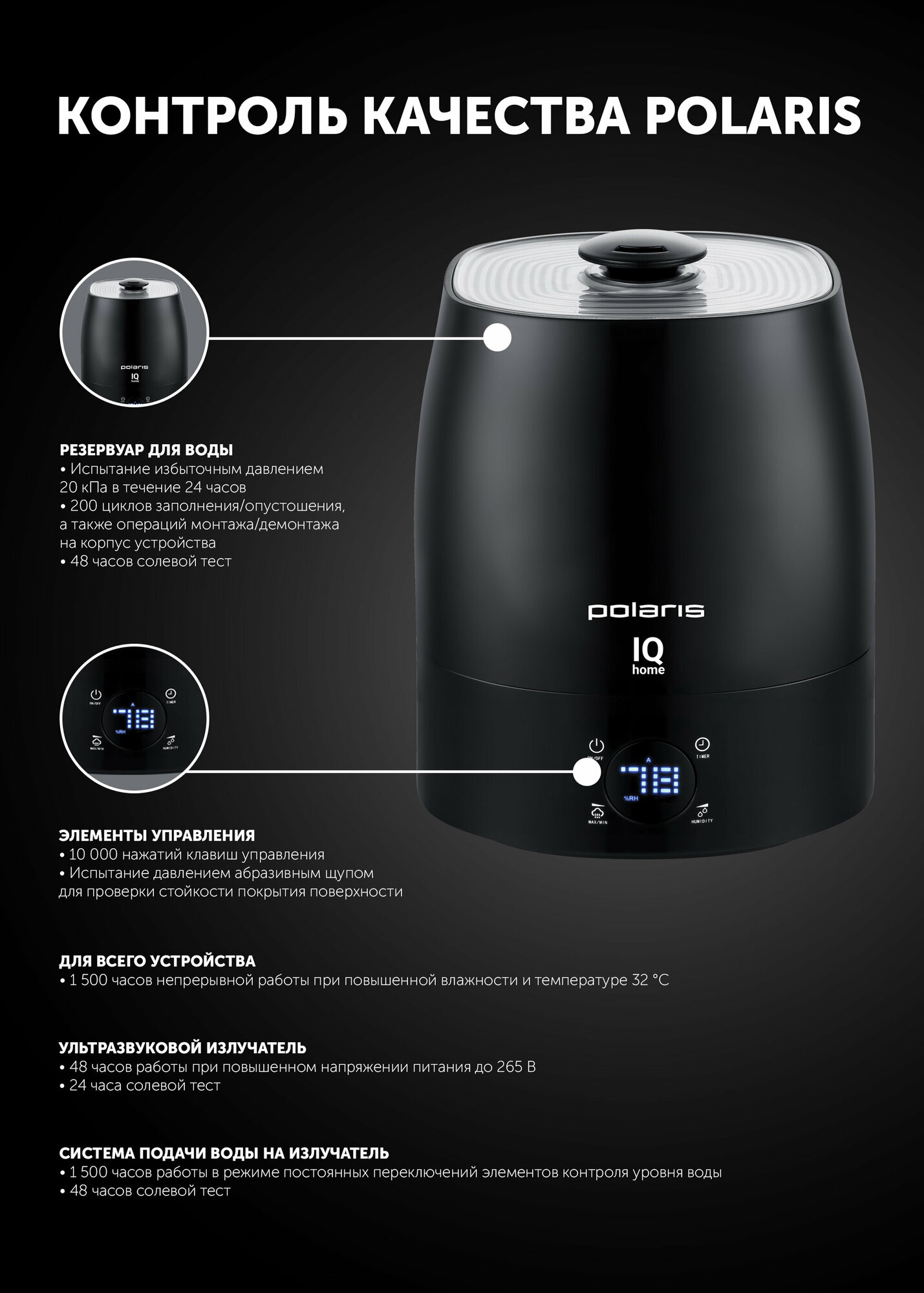 Увлажнитель воздуха POLARIS PUH 1010 WiFi IQ Home, объем бака 5,5 л, 30 Вт, черный, 55511 /Квант продажи 1 ед./