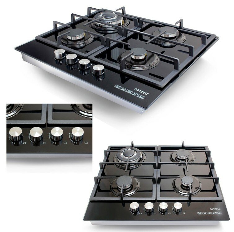 Купить Варочная панель газовая Ginzzu HCG-469, стекло 4 конф, черная, эл. поджиг, газконтроль