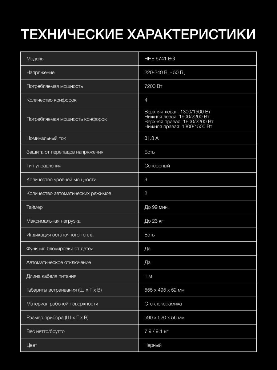 Индукционная варочная поверхность Hyundai HHI 6745 BG, 60 см, с автозакипанием, черный