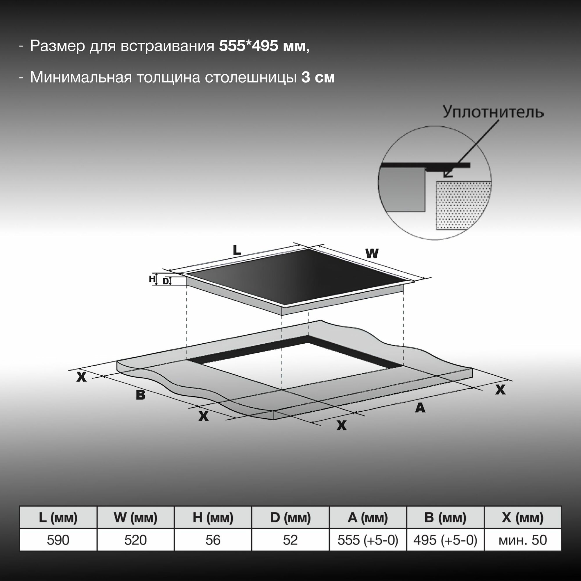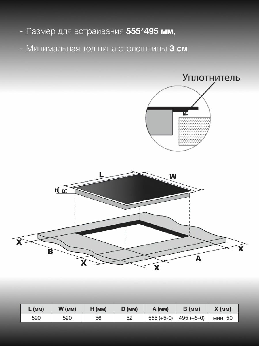 | Ширина для встраивания | 56 см |