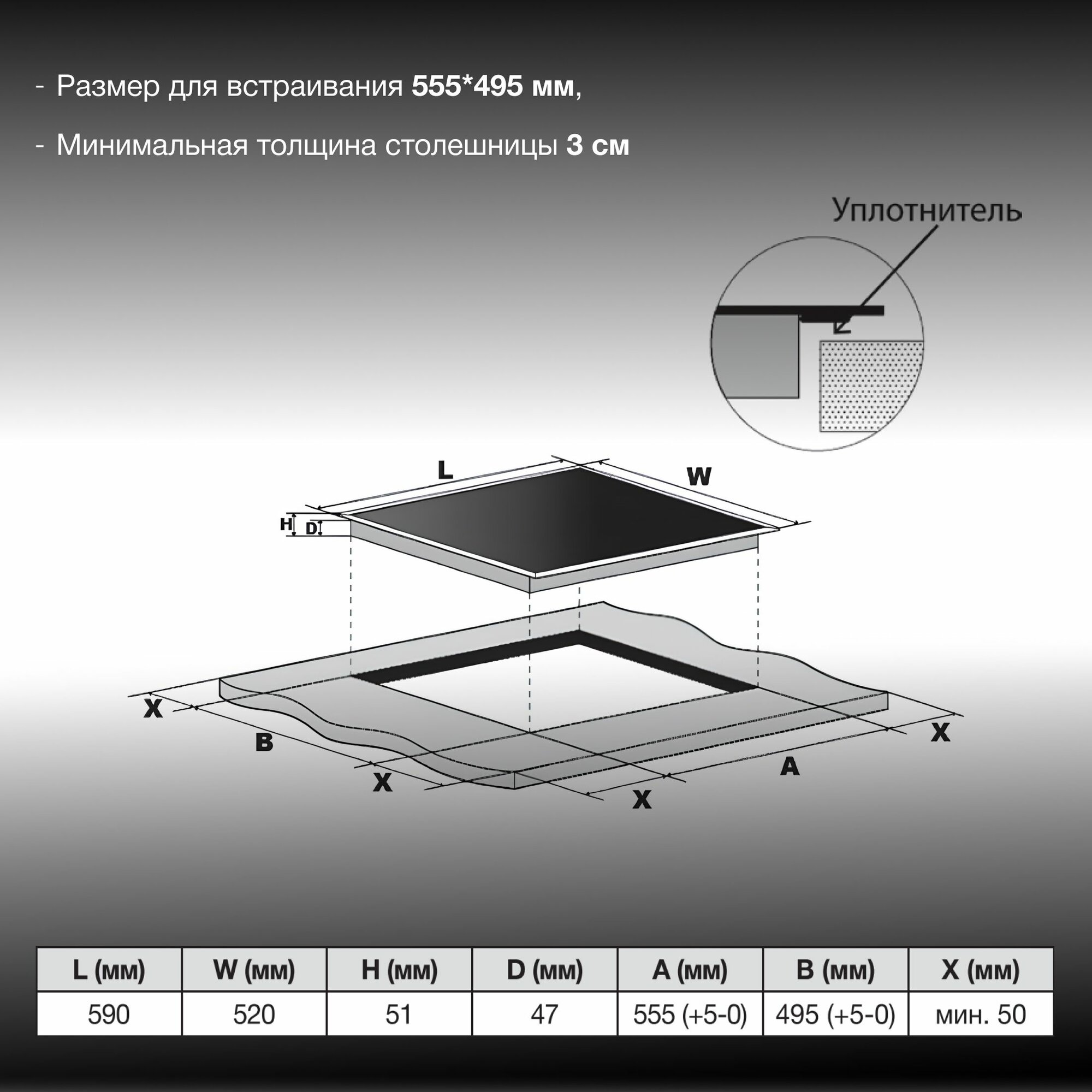 | Глубина для встраивания | 49 см |