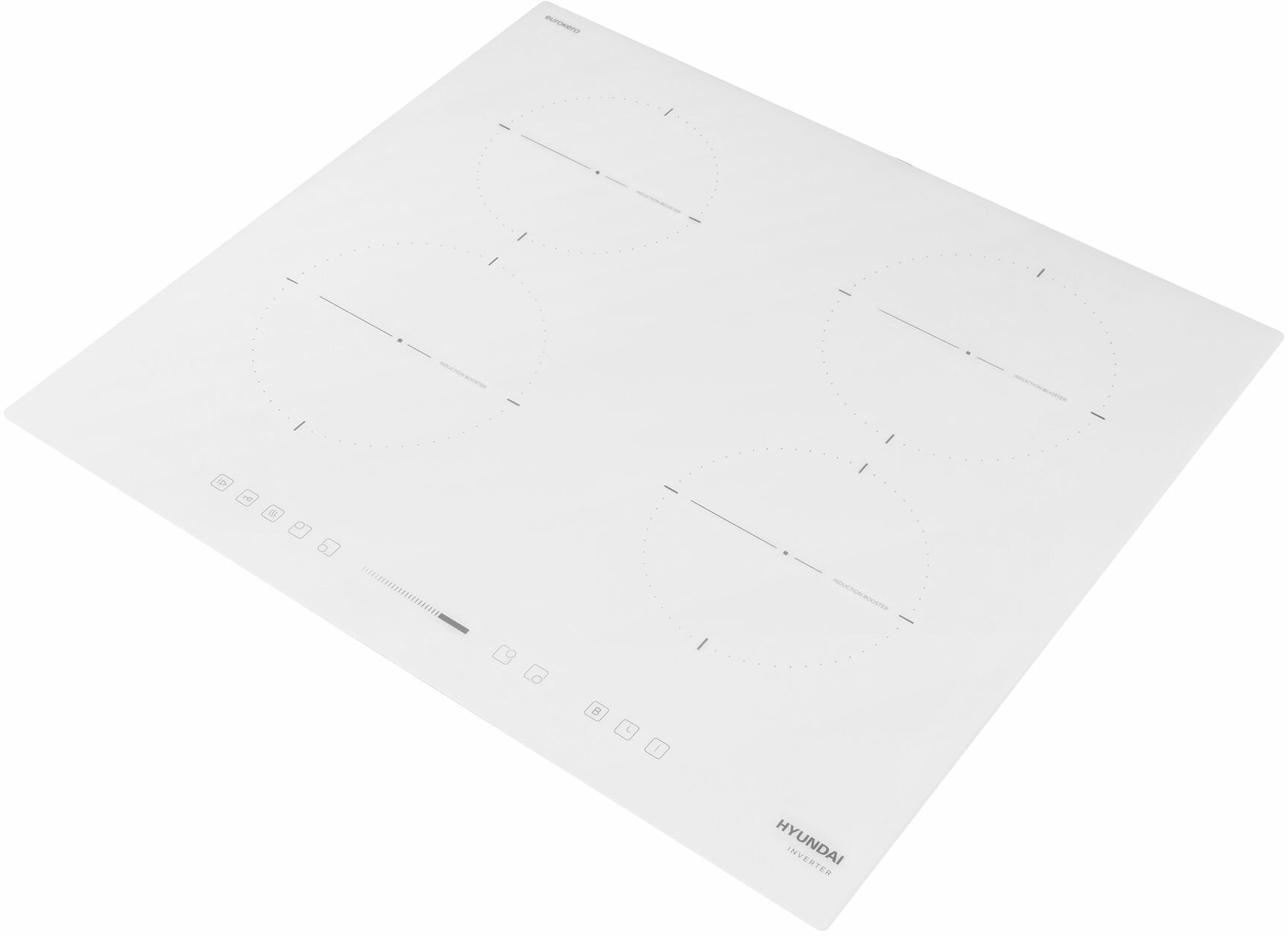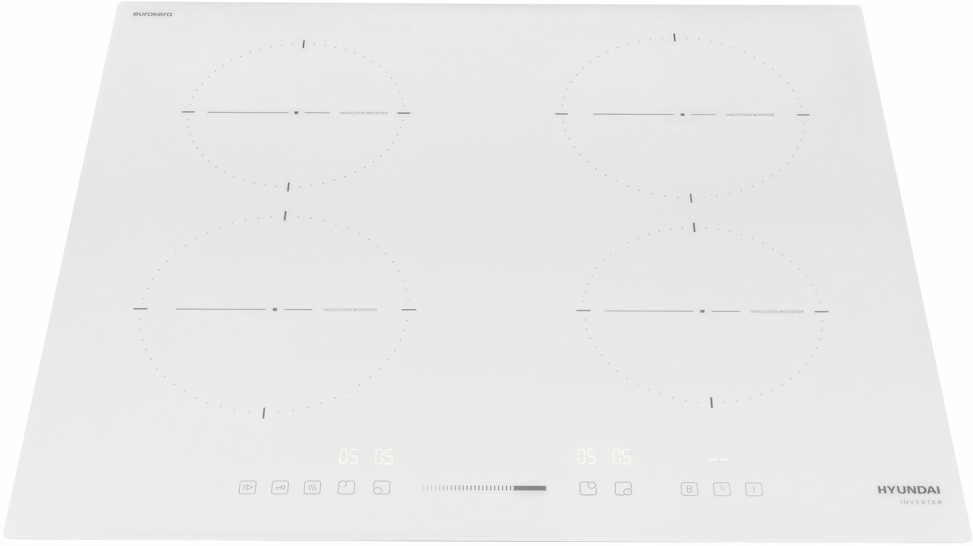 Купить Индукционная варочная поверхность Hyundai HHI 6752 WG, Слайдерное управление, белая индикация, Инвертер, Французская стеклокерамика EUROKERA, функция паузы, скошенный передний край рамки, белый