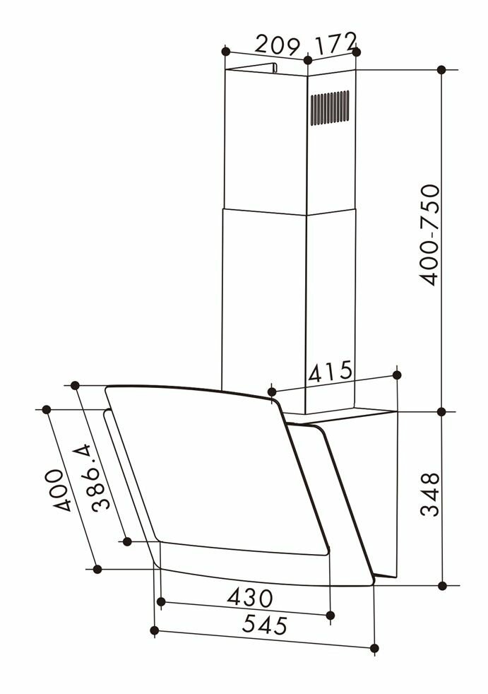 Наклонная Вытяжка кухонная бытовая 60 см, мотор 190 Вт., 1100 м3/ч., Отвод/Рециркуляция il Monte KH-DELUXE 6011 BL