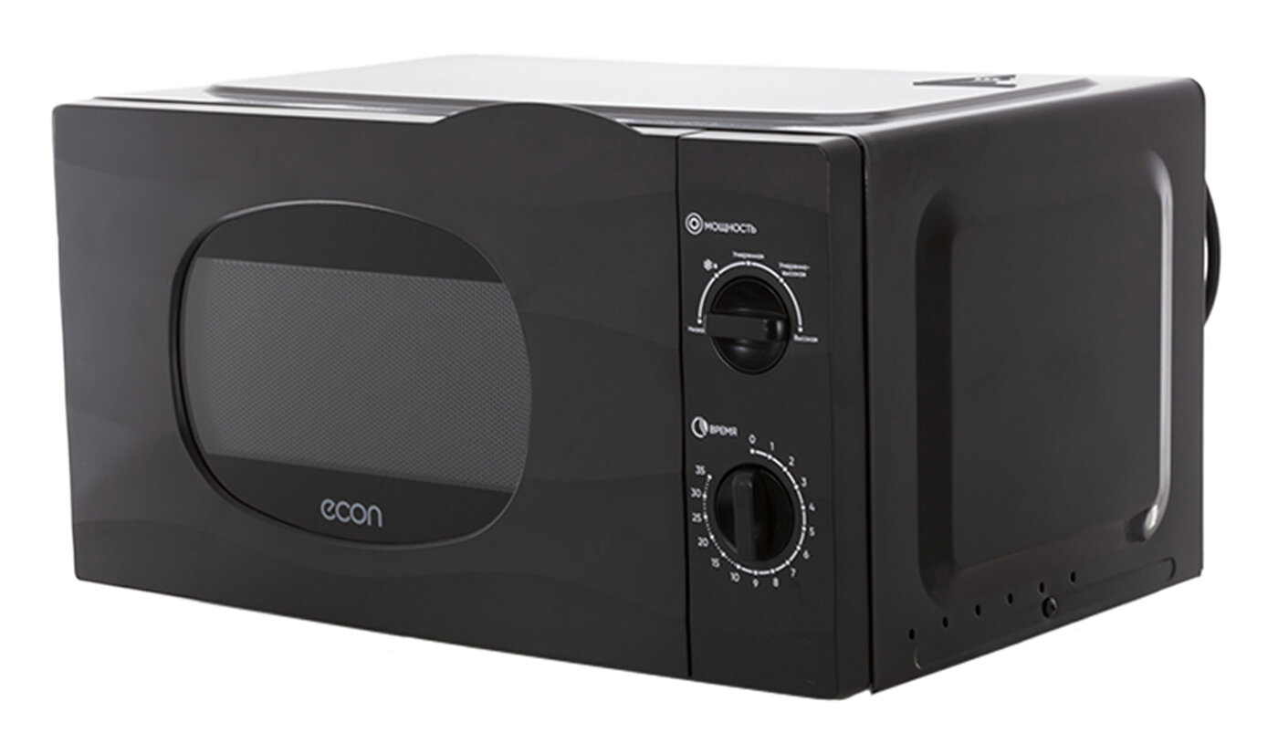 Купить Черная микроволновая печь ECON ECO-2038M black / 20 литров, с подсветкой, ретро-дизайн, 5 уровней мощности, таймер 35 минут, 2 года гарантии, 700 Вт