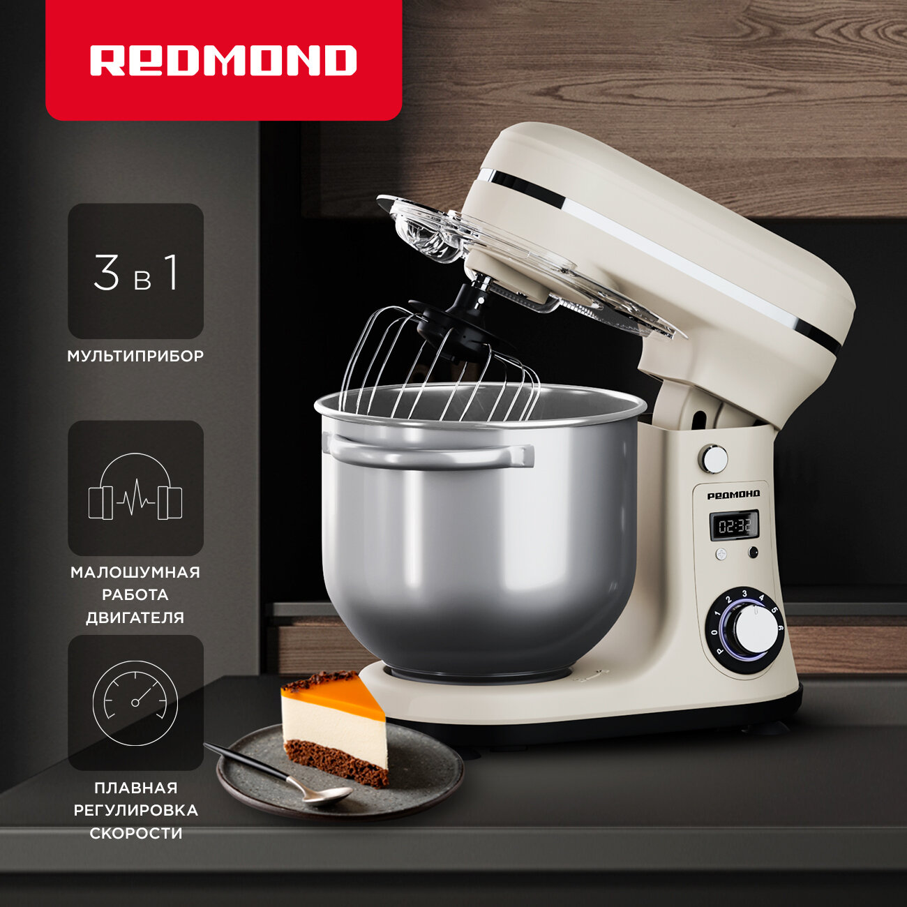 Планетарный миксер РЕДМОНД FM605 (бежевый) интересное: