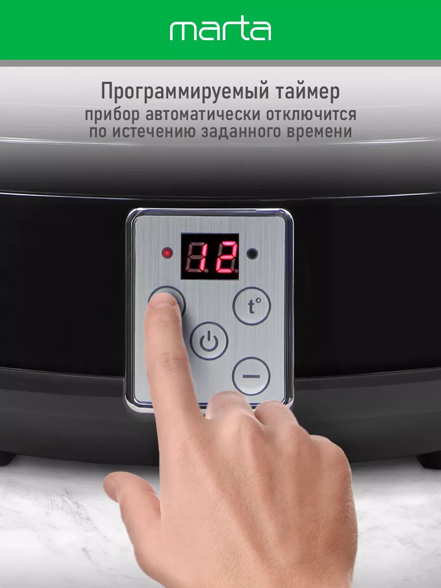 Дегидратор сушилка для овощей электросушилка MARTA MT-FD1888A 8 поддонов (4 основных + 2 для пастилы + 2 для ягод) черный