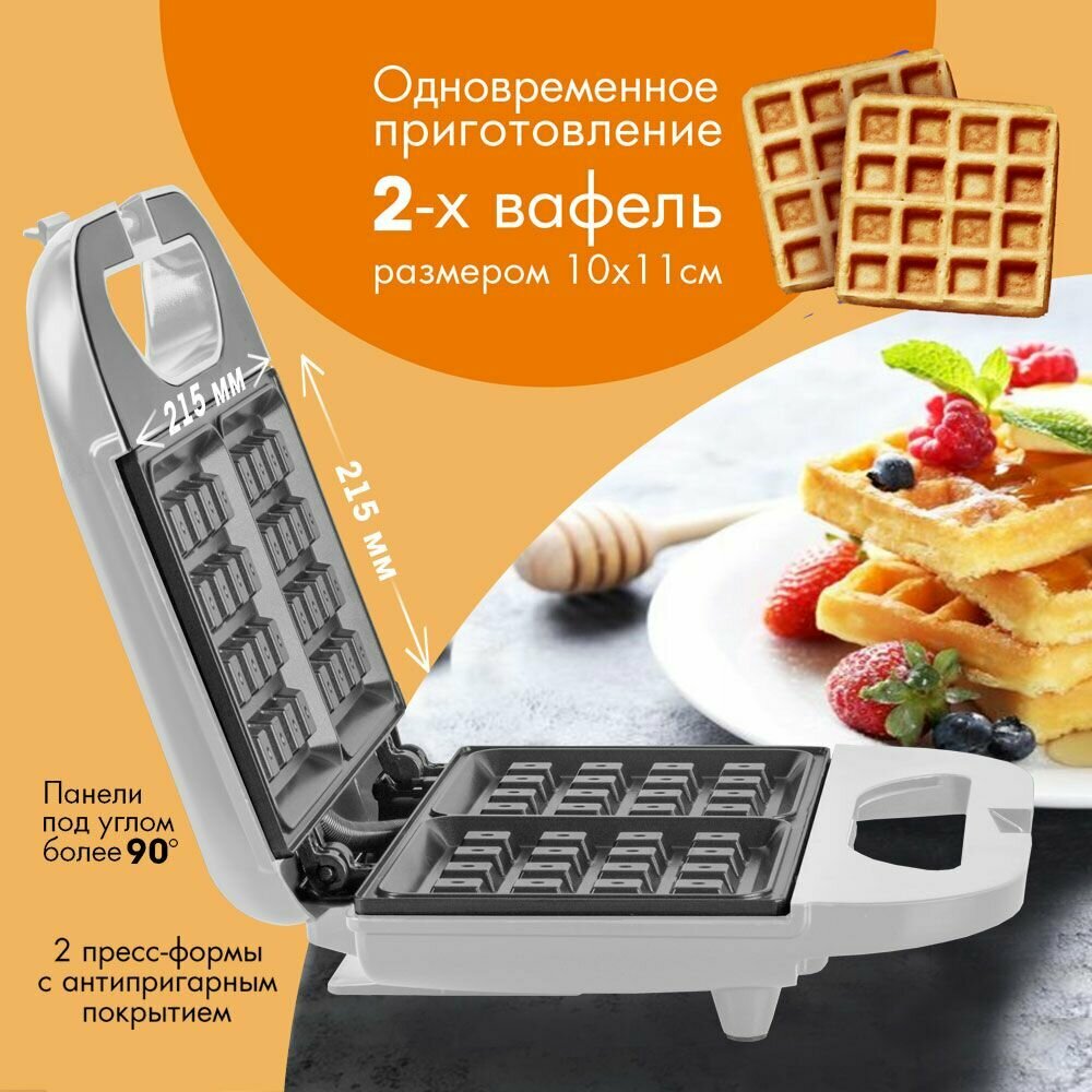 | Дополнительная информация | Одновременное приготовление 2-х вафель, Корпус их термостойкого биопластика, Антипригарное покрытие, Индикатор включения, Индикатор готовности к работе, Эргономичная ненагревающаяся ручка, Автофиксация для облегчения закрывания, Вертикальное хранение |