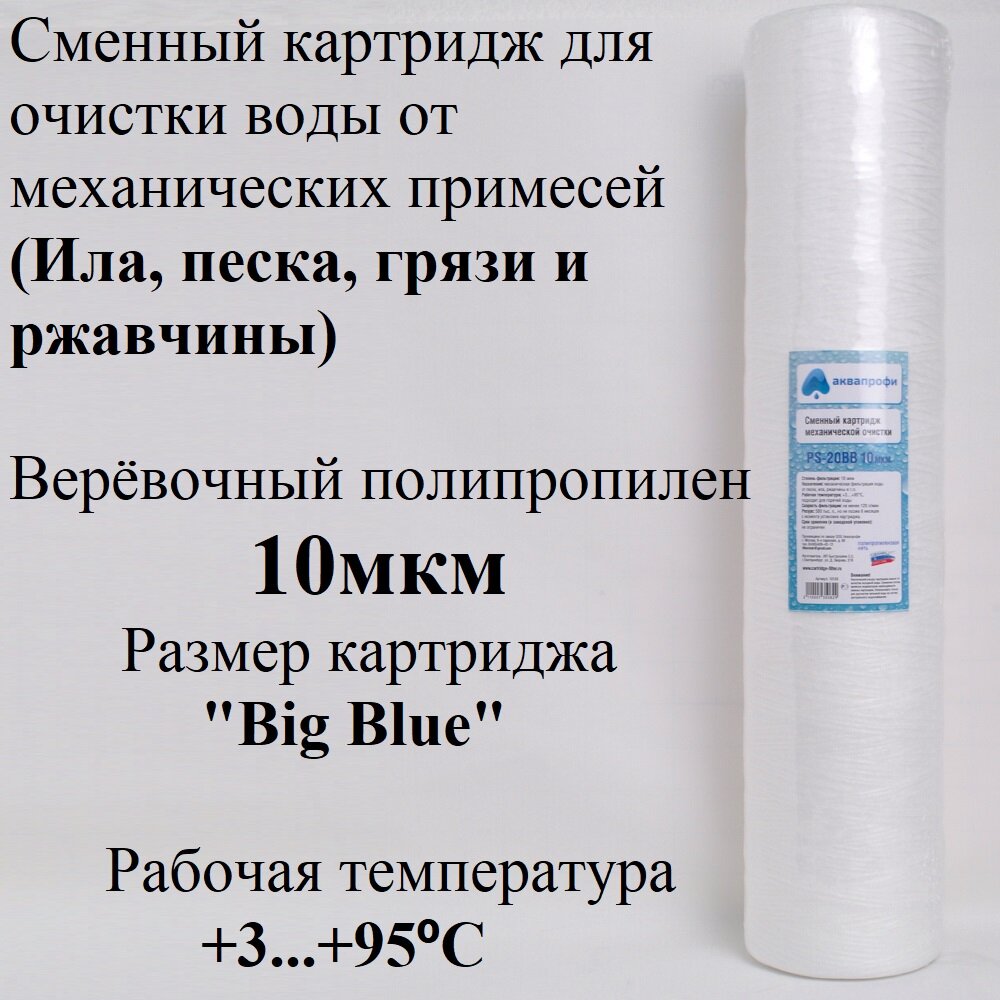 Картридж нитяной РS-20ВВ 10мкм аквапрофи для магистрального фильтра, для корпуса 20ВВ интересное: