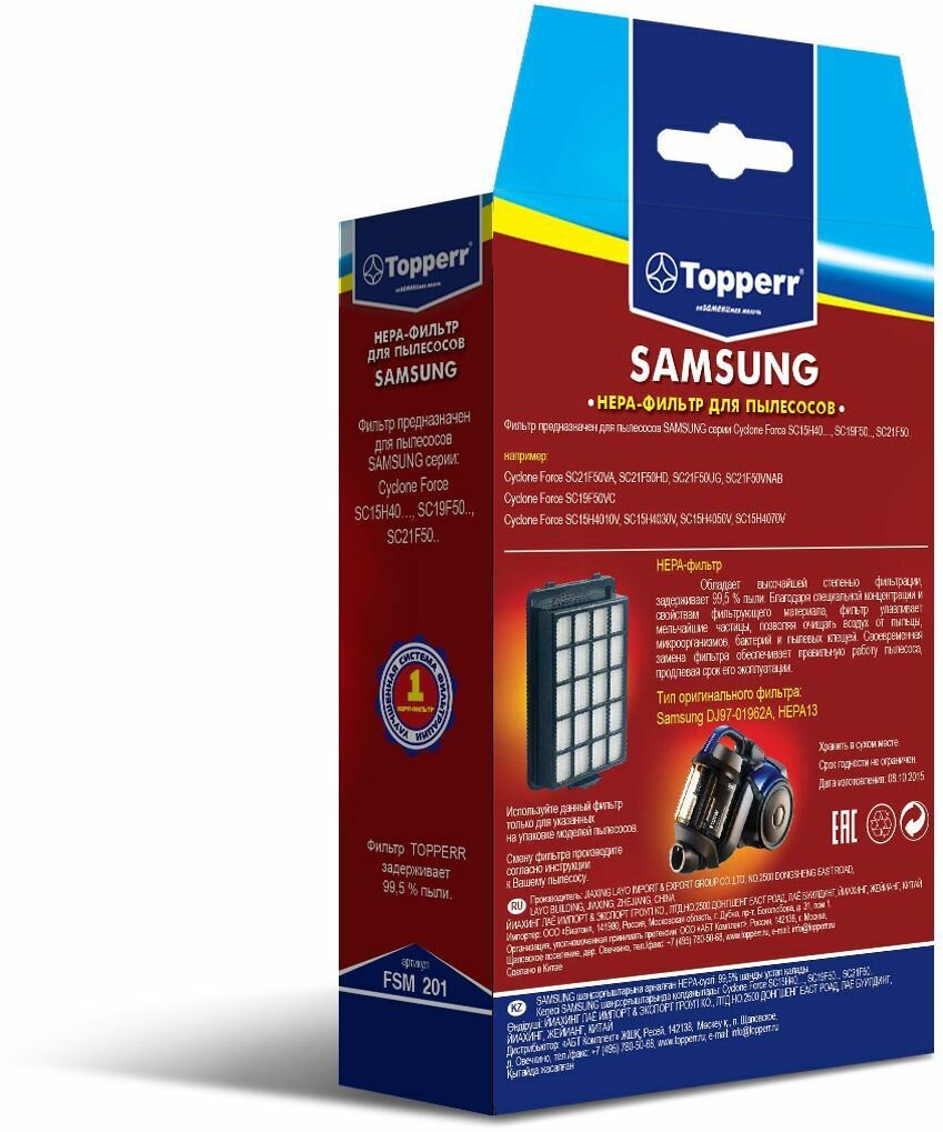 Нера фильтр Topperr FSM 201 для пылесосов SAMSUNG DJ97-01962A интересное:
