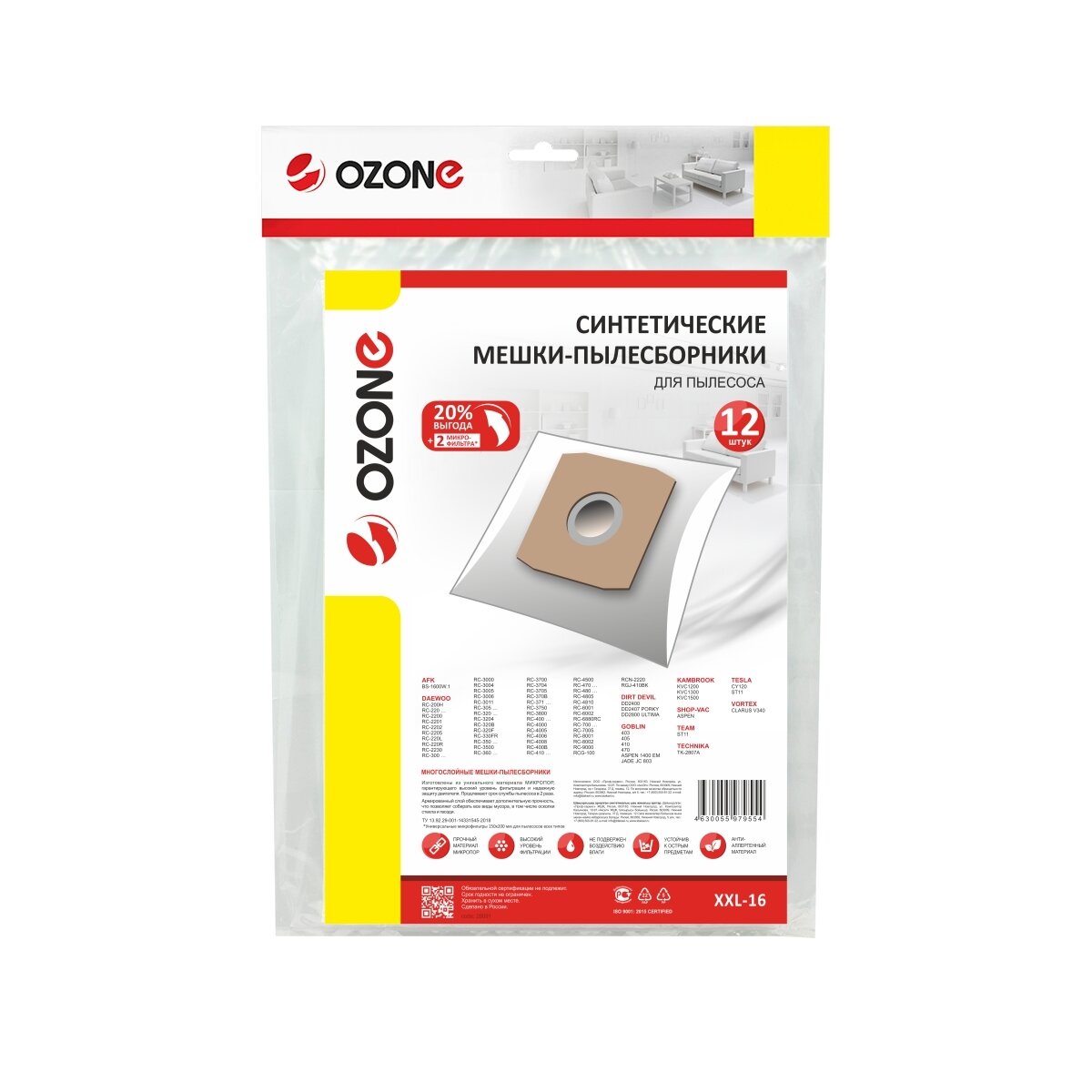 Мешки-пылесборники для пылесоса Ozone XXL-16 синтетические, 12 шт в комплекте с 2мя микрофильтрами
