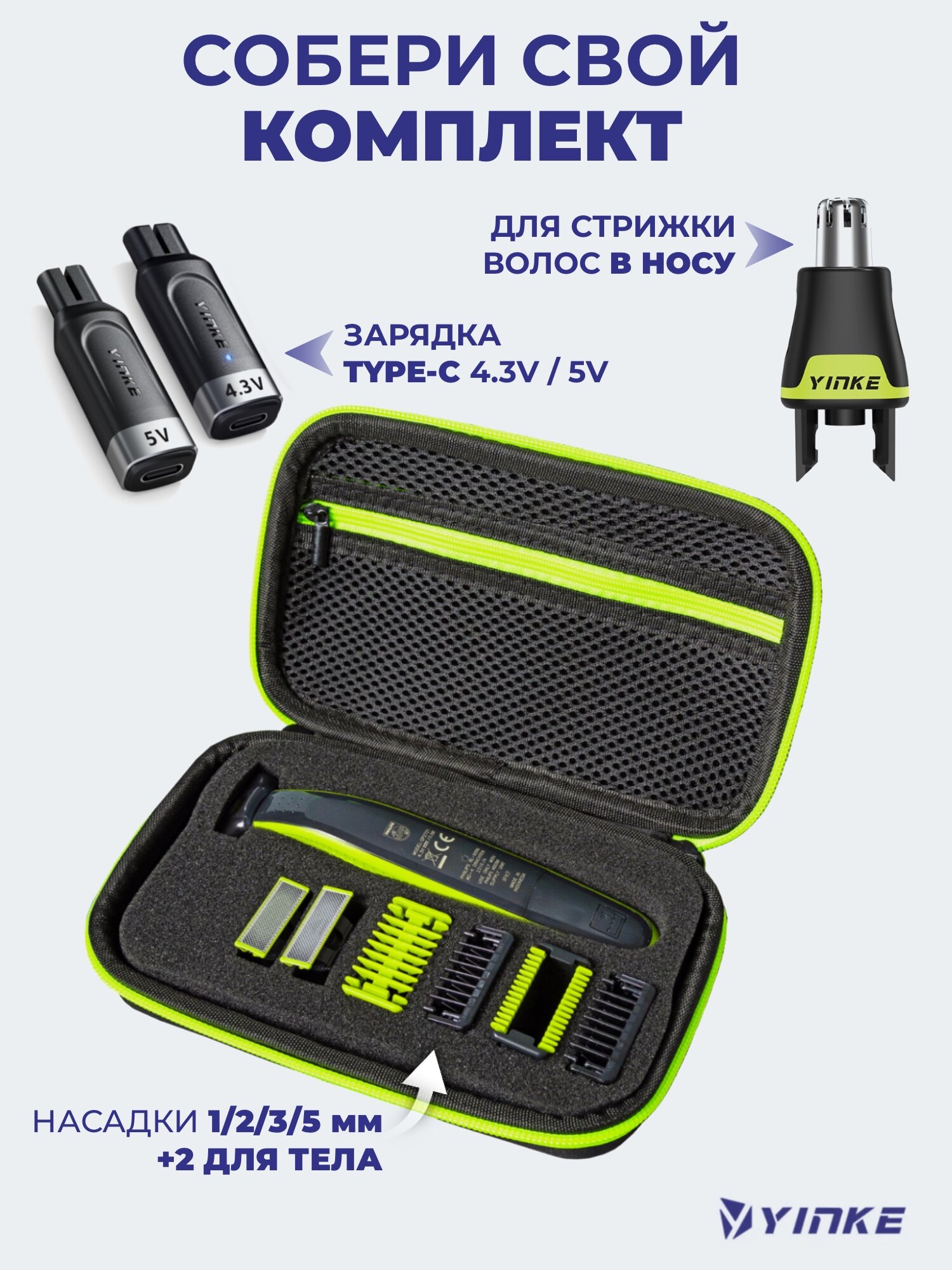 | Тип насадки | насадка для бороды / насадка для лица / насадка для носа и ушей / насадка-триммер / насадка для зоны бикини |