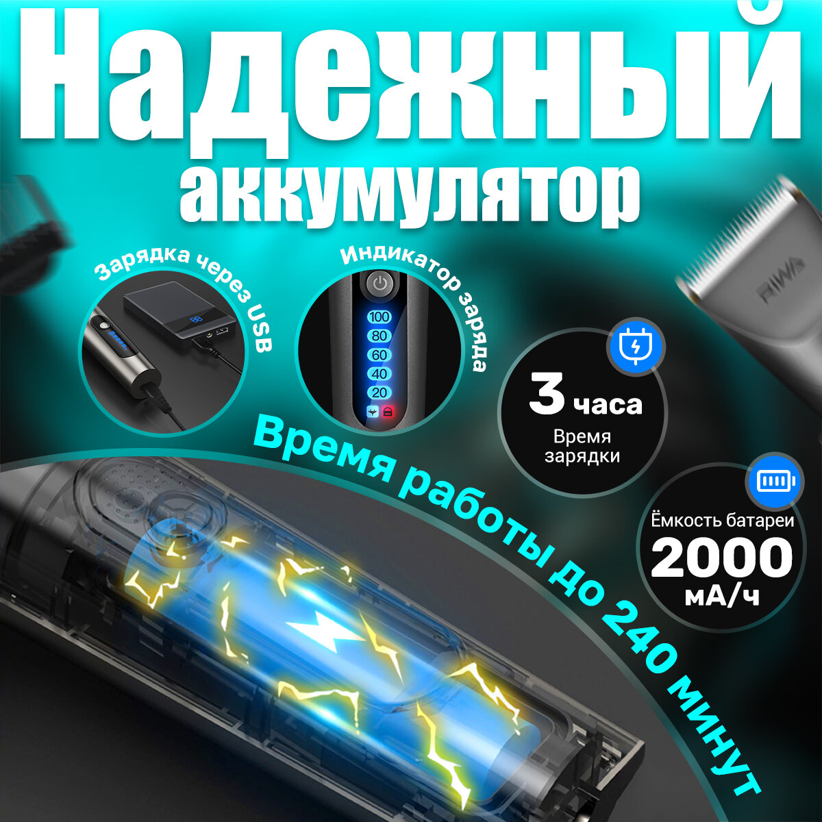 Машинка для стрижки волос беспроводная для мужчин, детей, триммер бороды RIWA RE-6305, подарок мужчине на день рождения интересное: