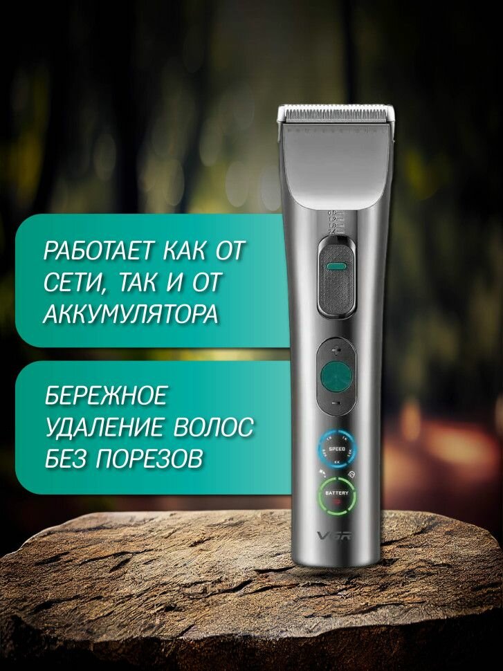 Машинка для стрижки VGR V-695, для волос и бороды, роторная, LED-экран, 5 насадок, 3 скорости