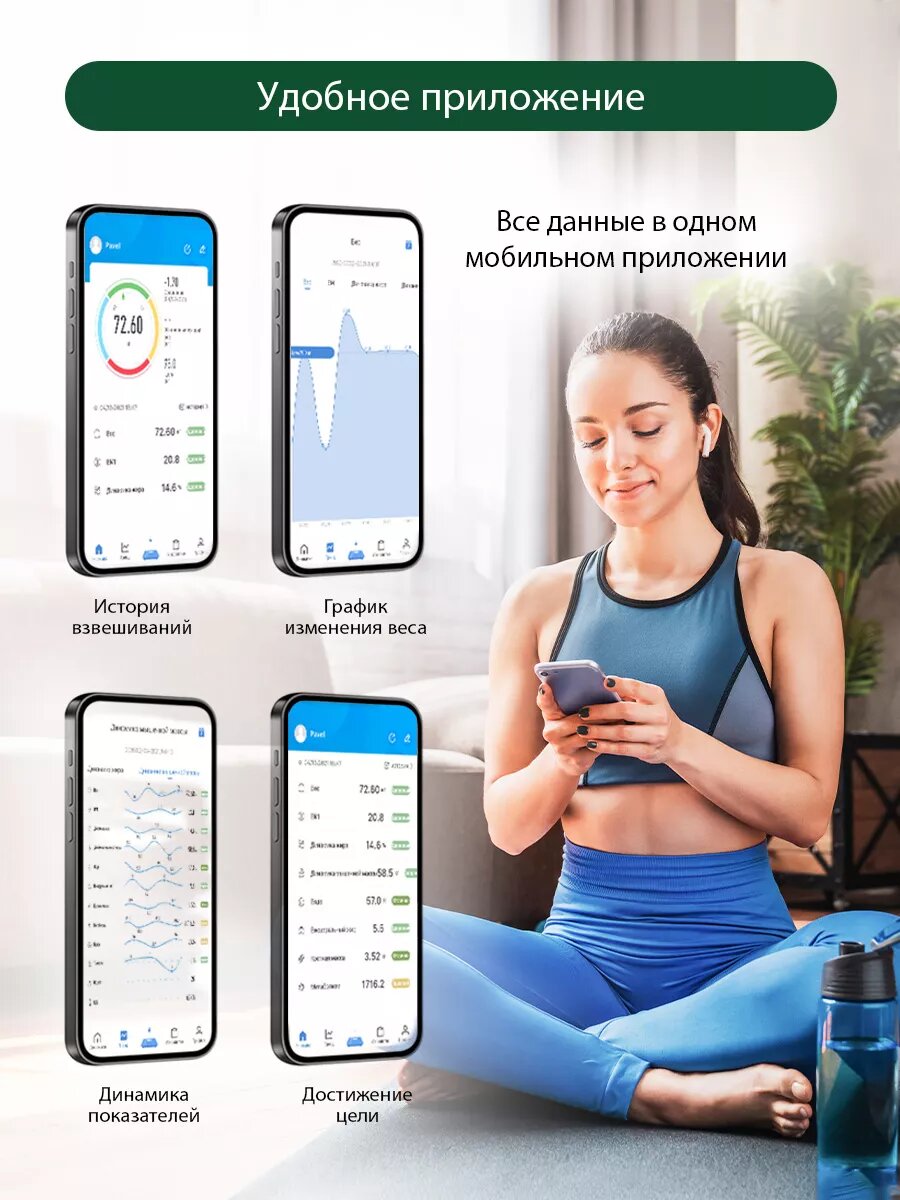 Умные диагностические весы, управление со смартфона, 30х30