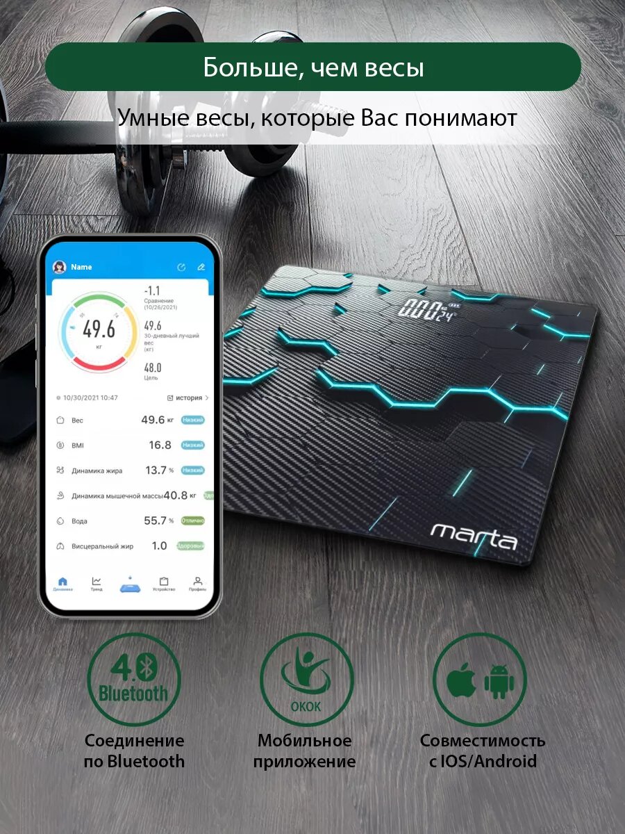 MARTA MT-SC3605 железо весы напольные диагностические умные, LED дисплей, Bluetooth
