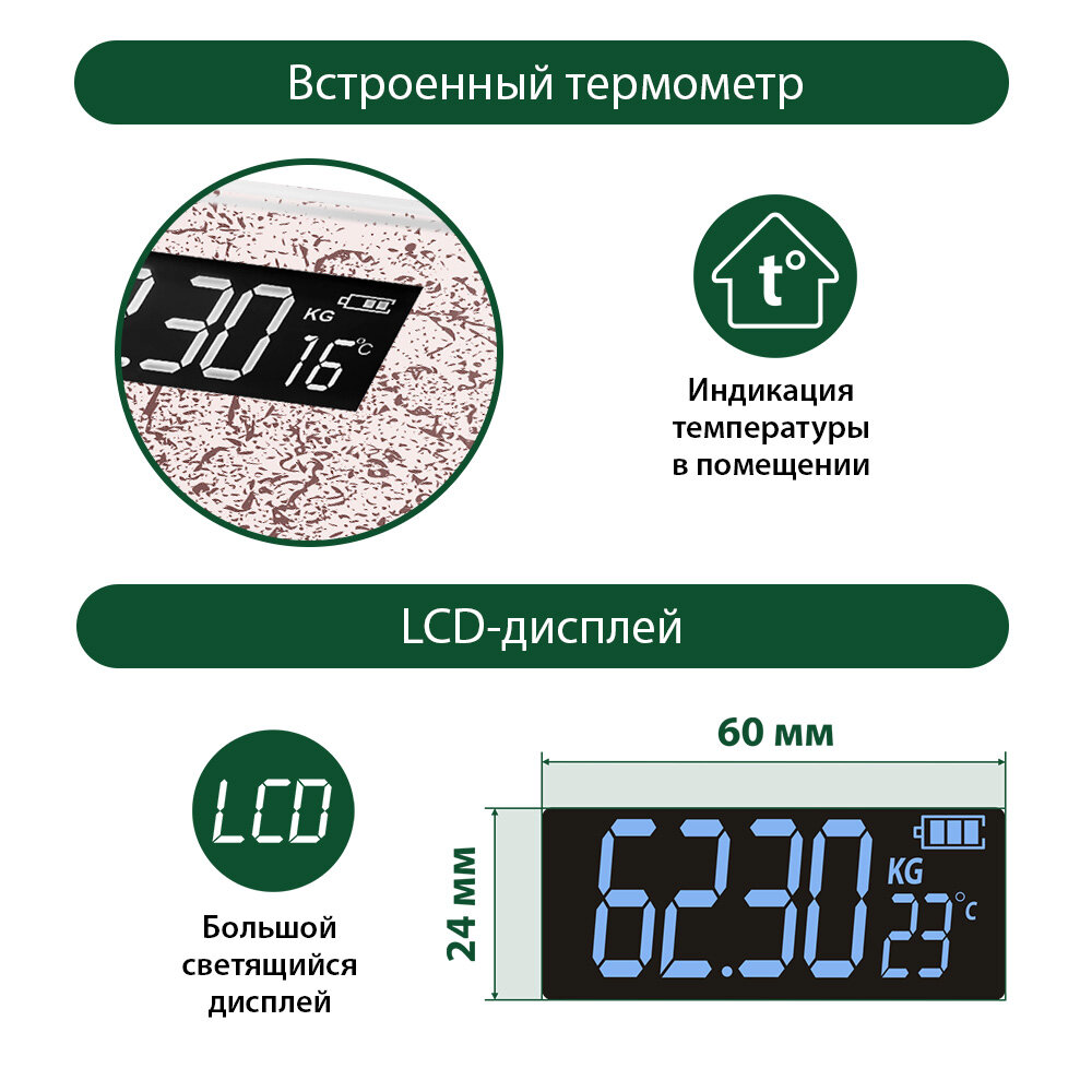 | Дополнительная информация | индикация заряда батареи, индикация перегрузки, светящиеся символы дисплея, автоматическое включение, автоматическое выключение, управляющее приложение - OkOk, поддержка на операционных системах - Android/iOS, количество запоминаемых пользователей - 8 |