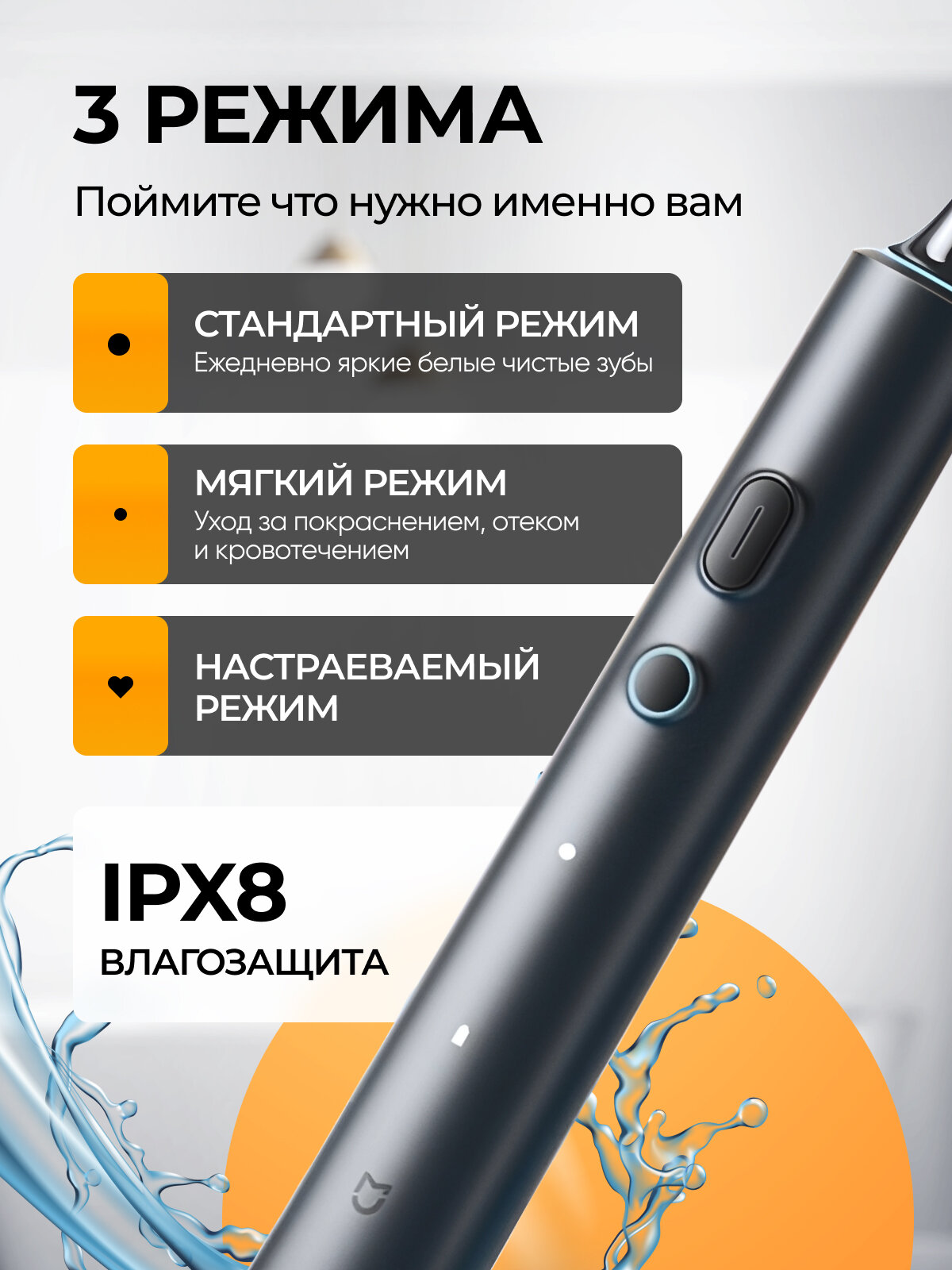 Купить Электрическая зубная щетка Xiaomi, T501 серый, ультразвуковая, черная, с индикатором зарядки