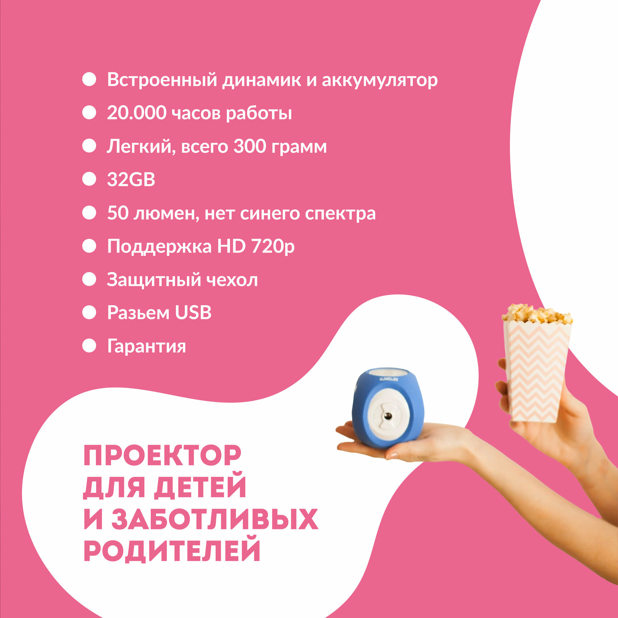 СохранитьДетский портативный мини-проектор / Мини-кинотеатр с динамиком для мультиков LUMICUBE, розовый интересное: