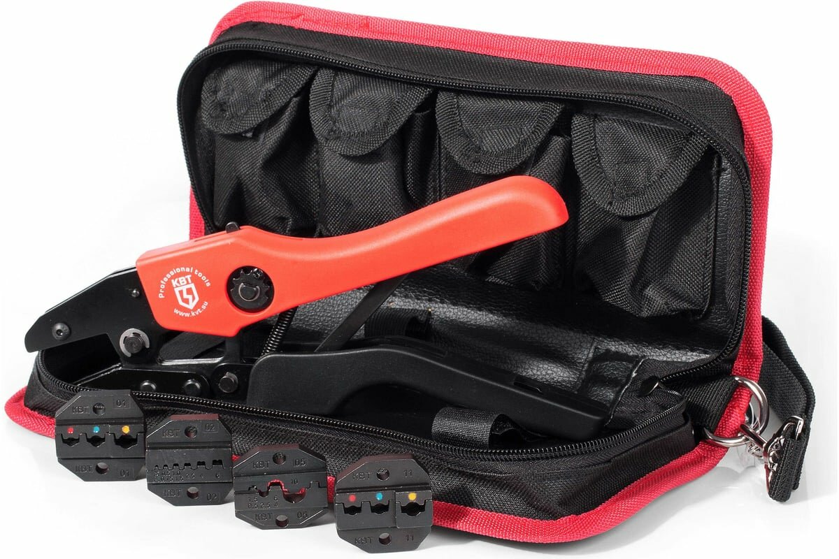 КВТ Набор в сумке СТК+4 серия профи пресс-клещи (кримпер) с четырьмя матрицами для опрессовки изолированных и неизолированных наконечников