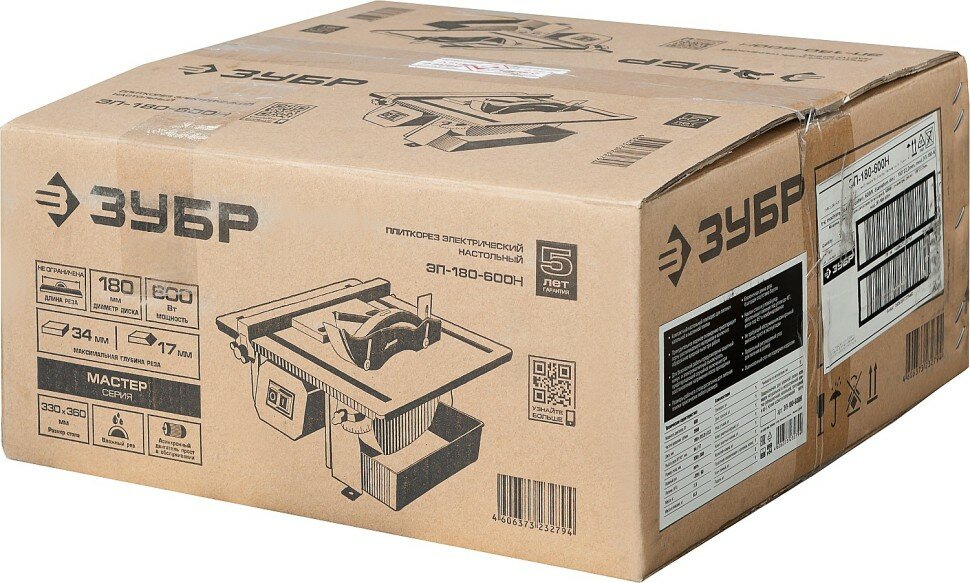 СохранитьЗУБР Электроплиткорез ЗУБР "мастер", диск 180 мм, глубина реза 90°-34мм/45°-17мм, стол 330х360мм, 2950об/мин, 600Вт, ( ЭП-180-600Н ) интересное:
