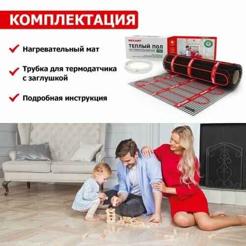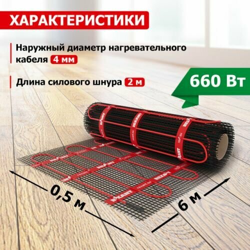 Тёплый пол (нагревательный мат) REXANT PRO (RNX -3,0-660 площадь 3,0 м² (0,5х6,0 м)), 660 Вт, двухжи