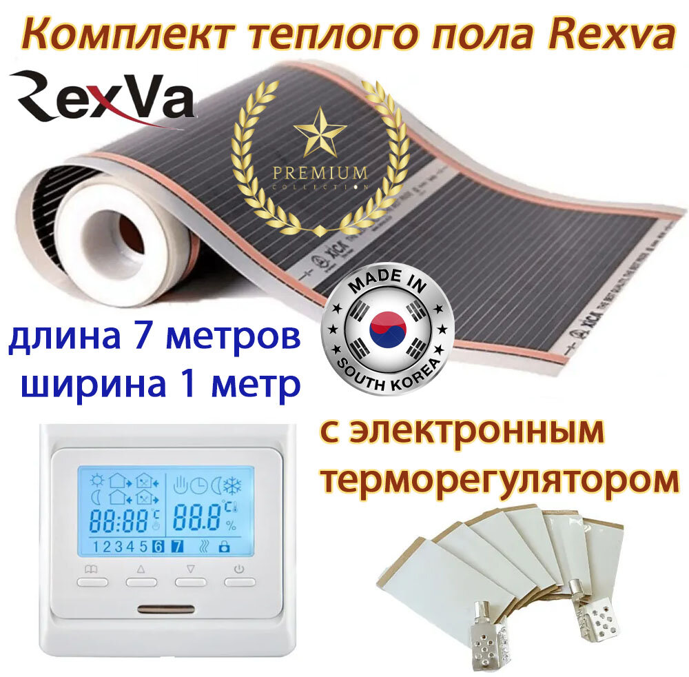Комплект инфракрасный пленочный теплый пол Rexva Xica XM 310 ширина 1 длина 7 метров и электронный терморегулятор