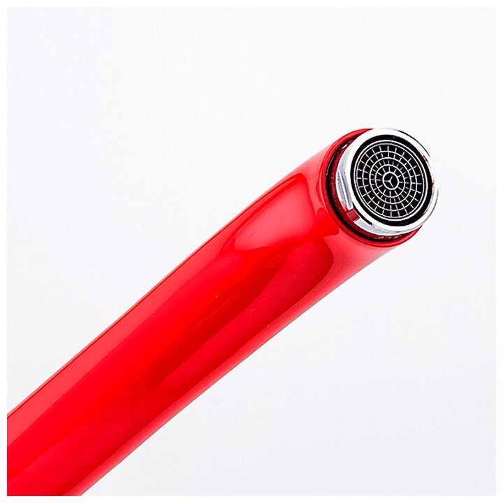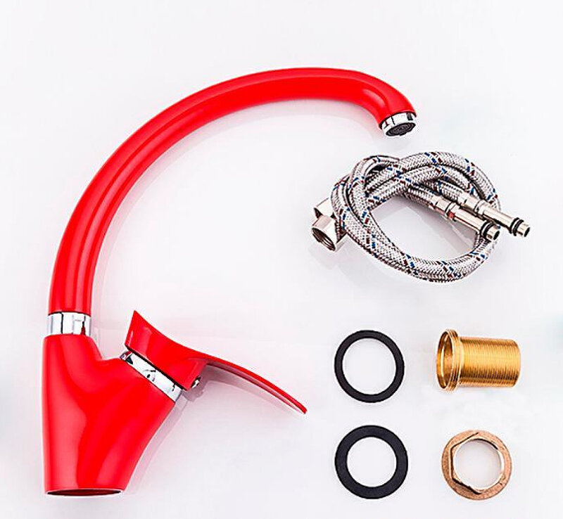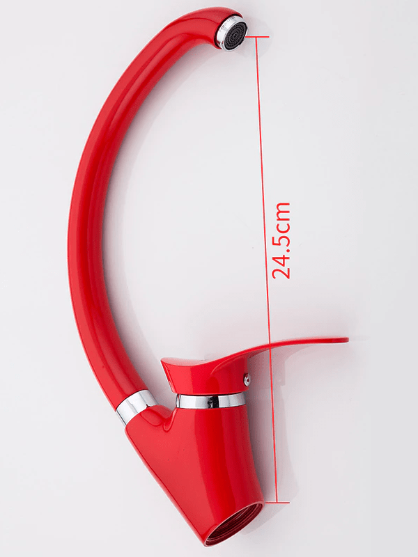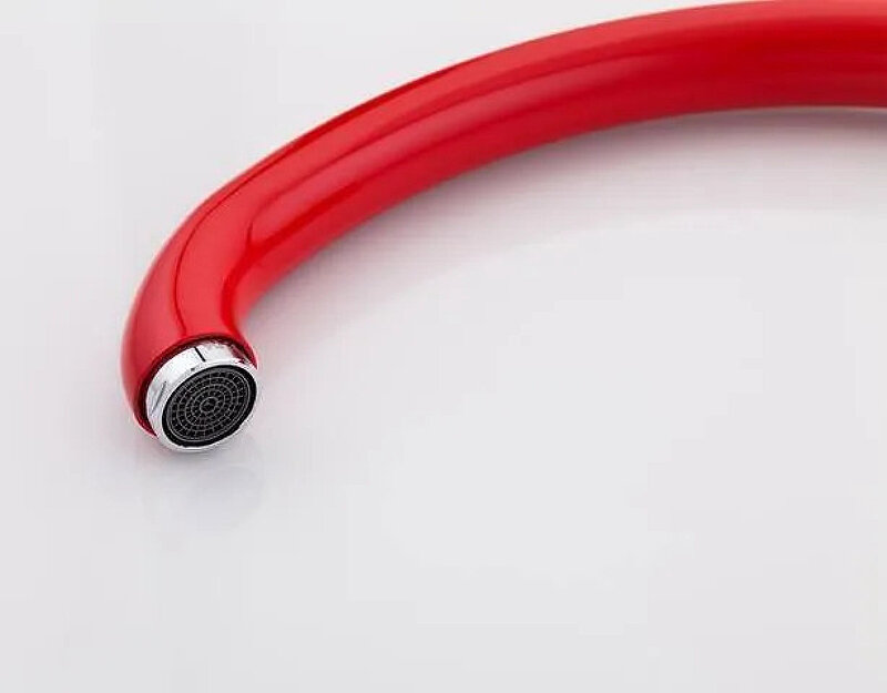 Смеситель красный для кухни, излив высокий, поворотный, однорычажный