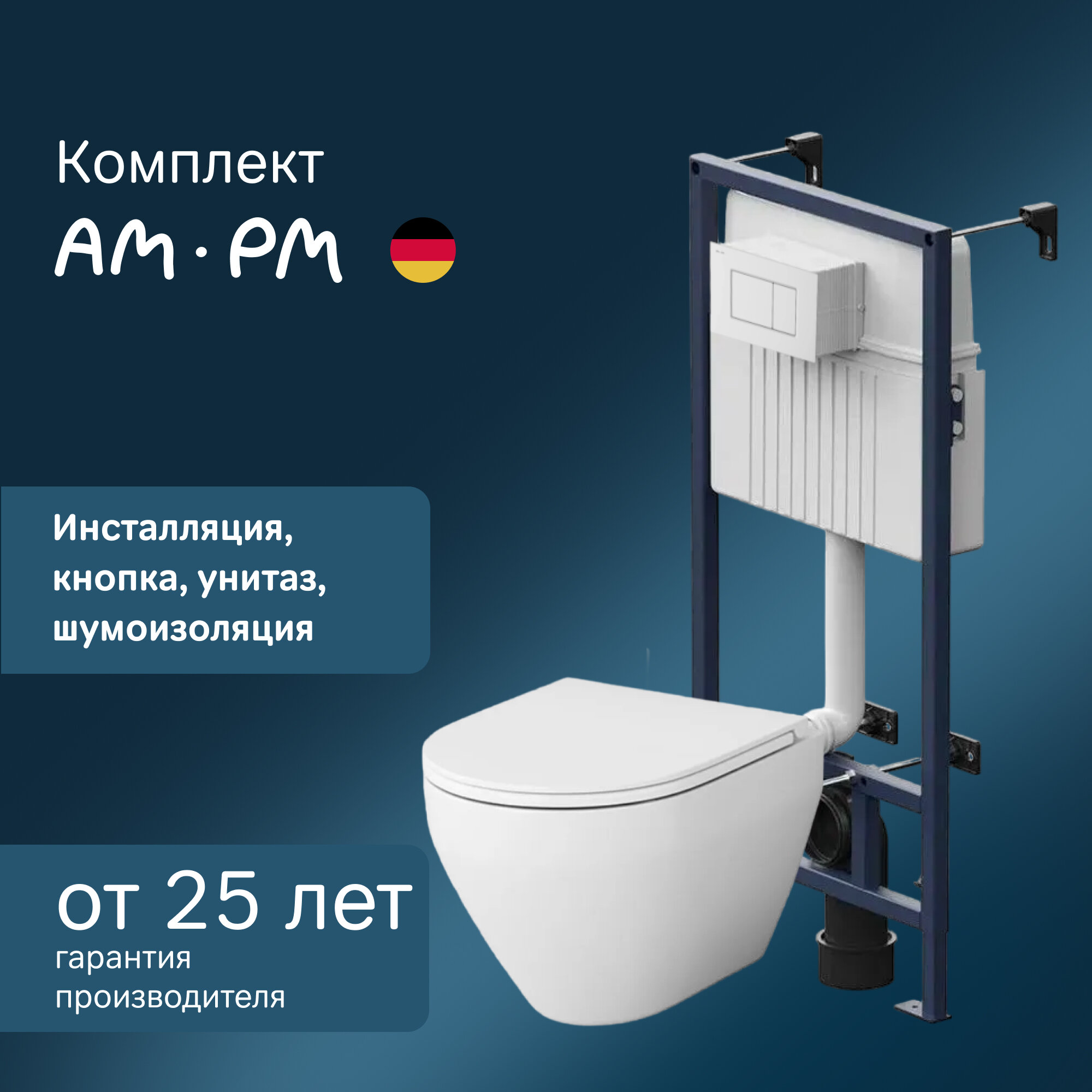Инсталляция с подвесным унитазом комплект AM.PM Spirit V2.0, мех. кнопка ProC S глянцевый белый, безободковый, сиденье с микролифтом, шумоизоляция