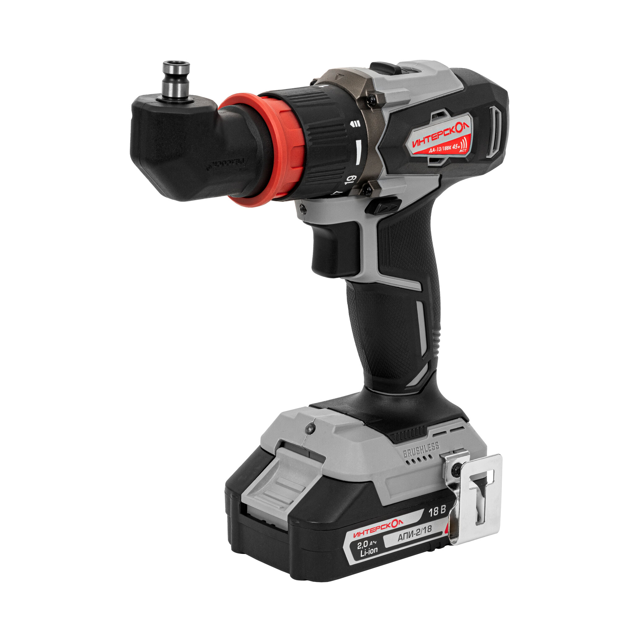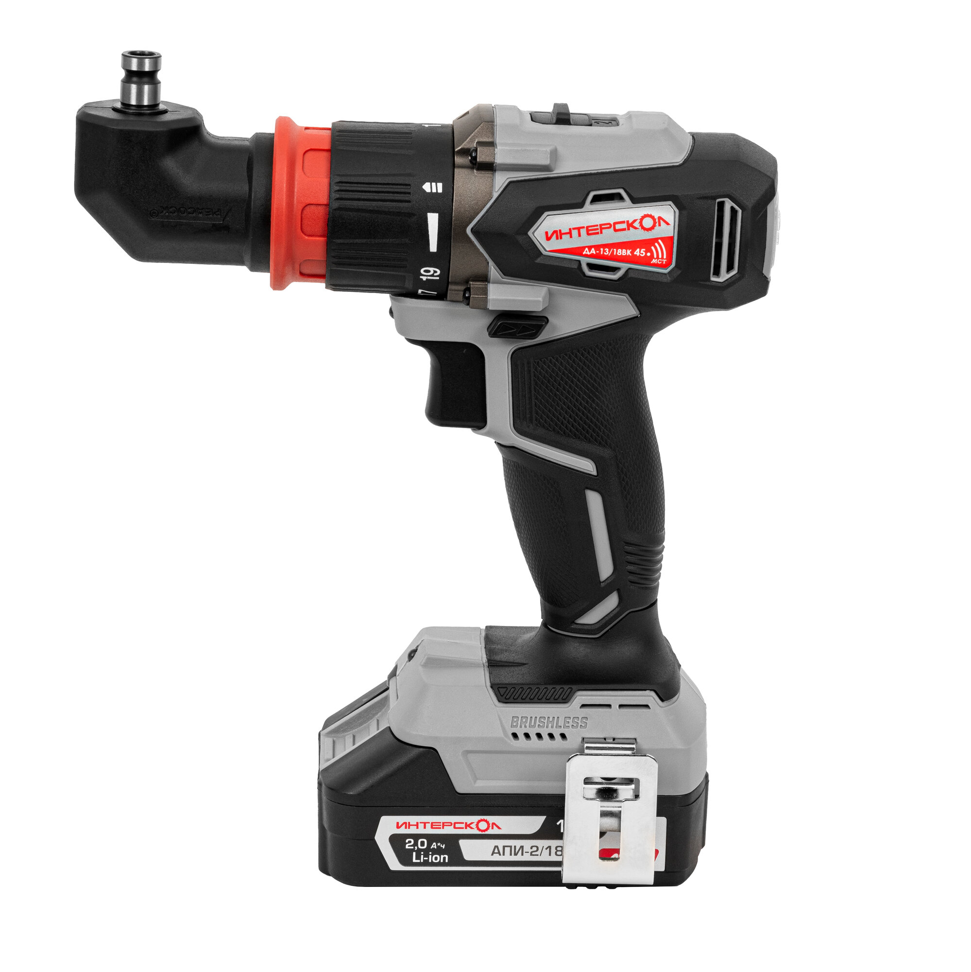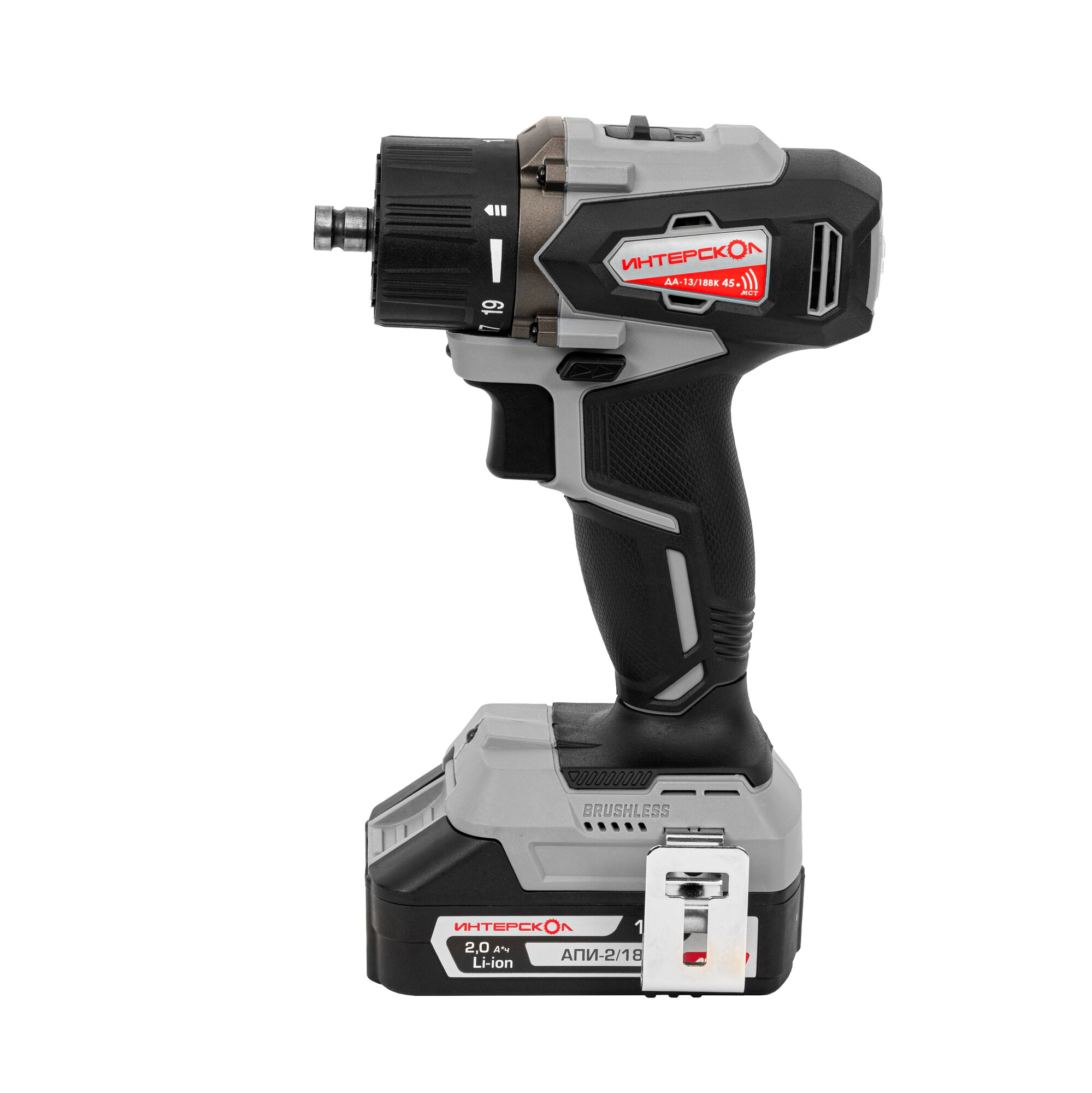 Дрель-шуруповерт аккумуляторная ИНТЕРСКОЛ ДА-13/18ВК 45 комби (АПИ, бесщёточный привод, Li-ion, кейс, 1,5Ач, 2 аккум., ЗУ)