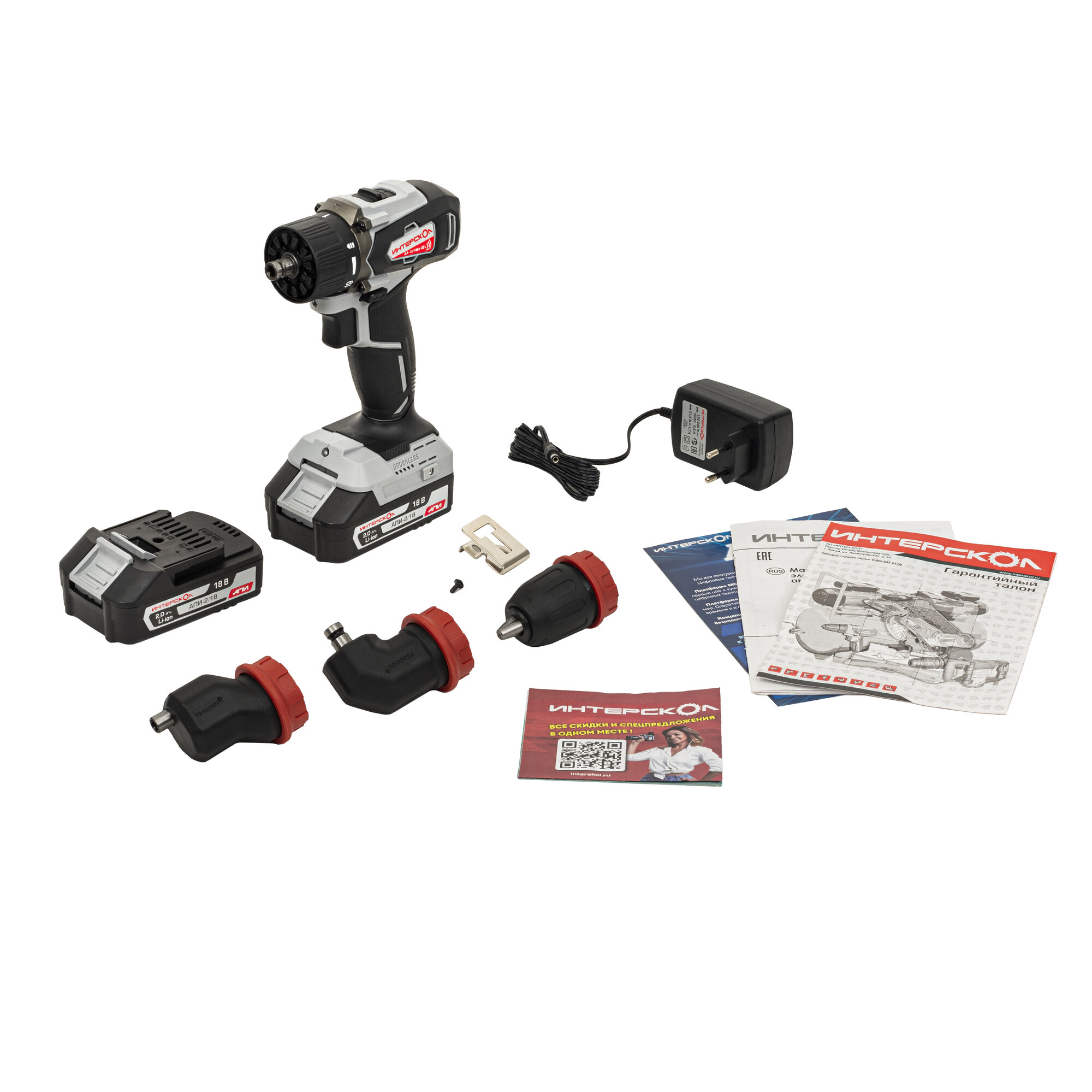 Бесщеточная аккумуляторная дрель-шуруповерт ИНТЕРСКОЛ ДА-13/18ВК 4 насадки комби
